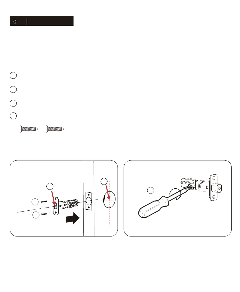 Adjust the bolt length and make sure the “+” hole of deadbolt in the middle of the door hole.