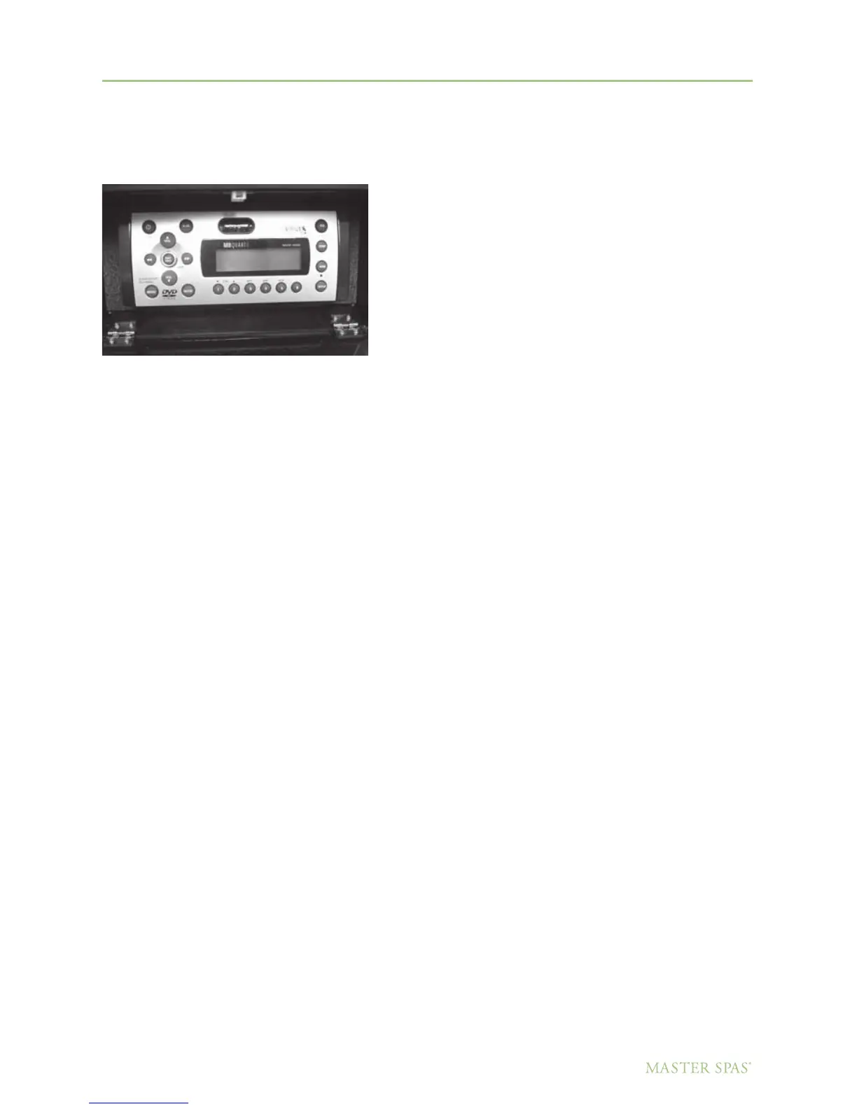 Do not operate the Audio / Video controls while inside the spa.
