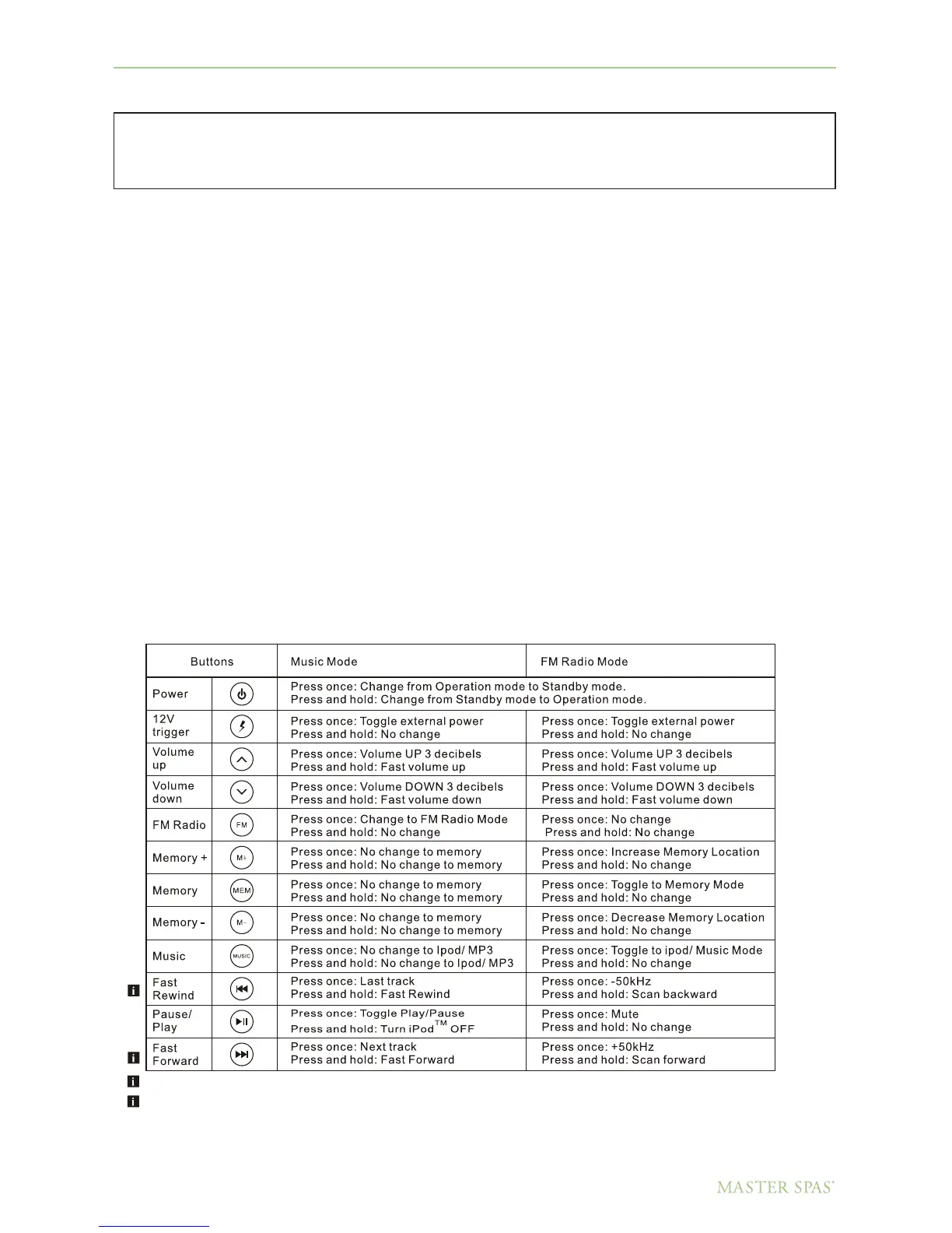 through the audio system of the spa. This audio system also has an FM only radio receiver that can be