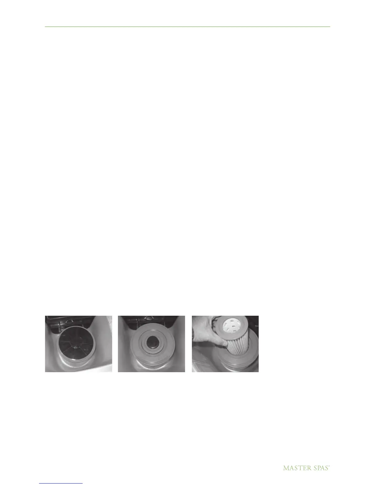 NOTE: Never operate the spa without filters in place. If done, damage will result to pumps and other