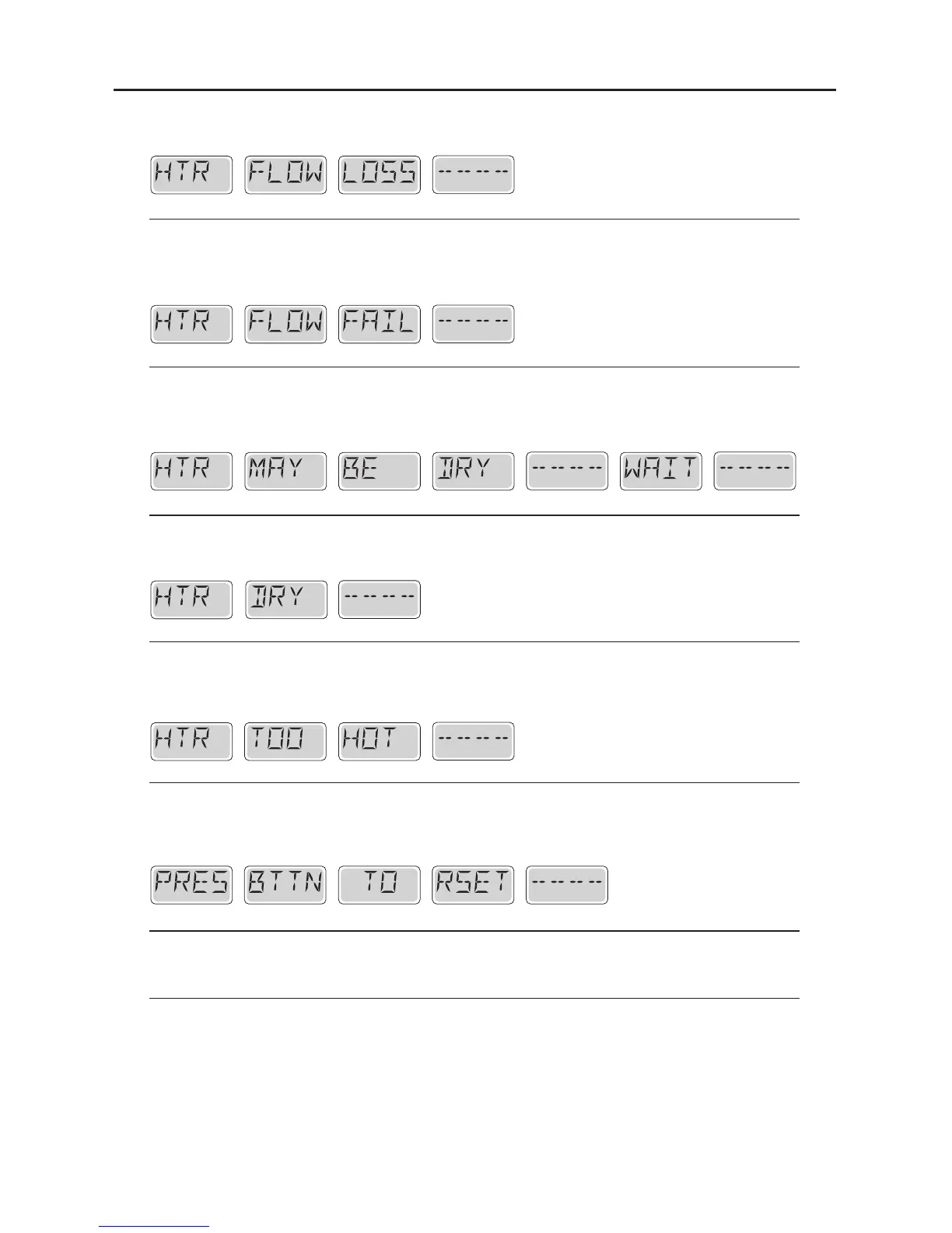 has been resolved, you must press any button to reset and restart heater start up. See “Flow