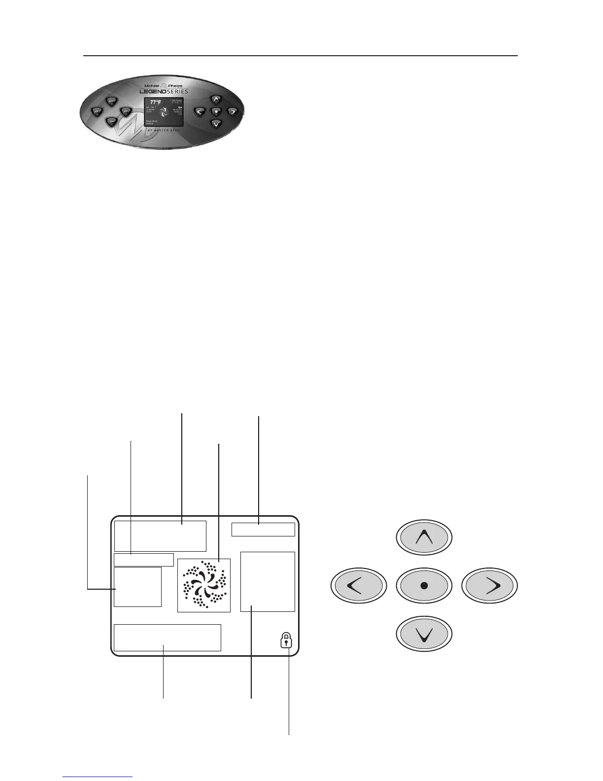 The Jets Icon in the center will indicate when a pump is running and also the heater function.