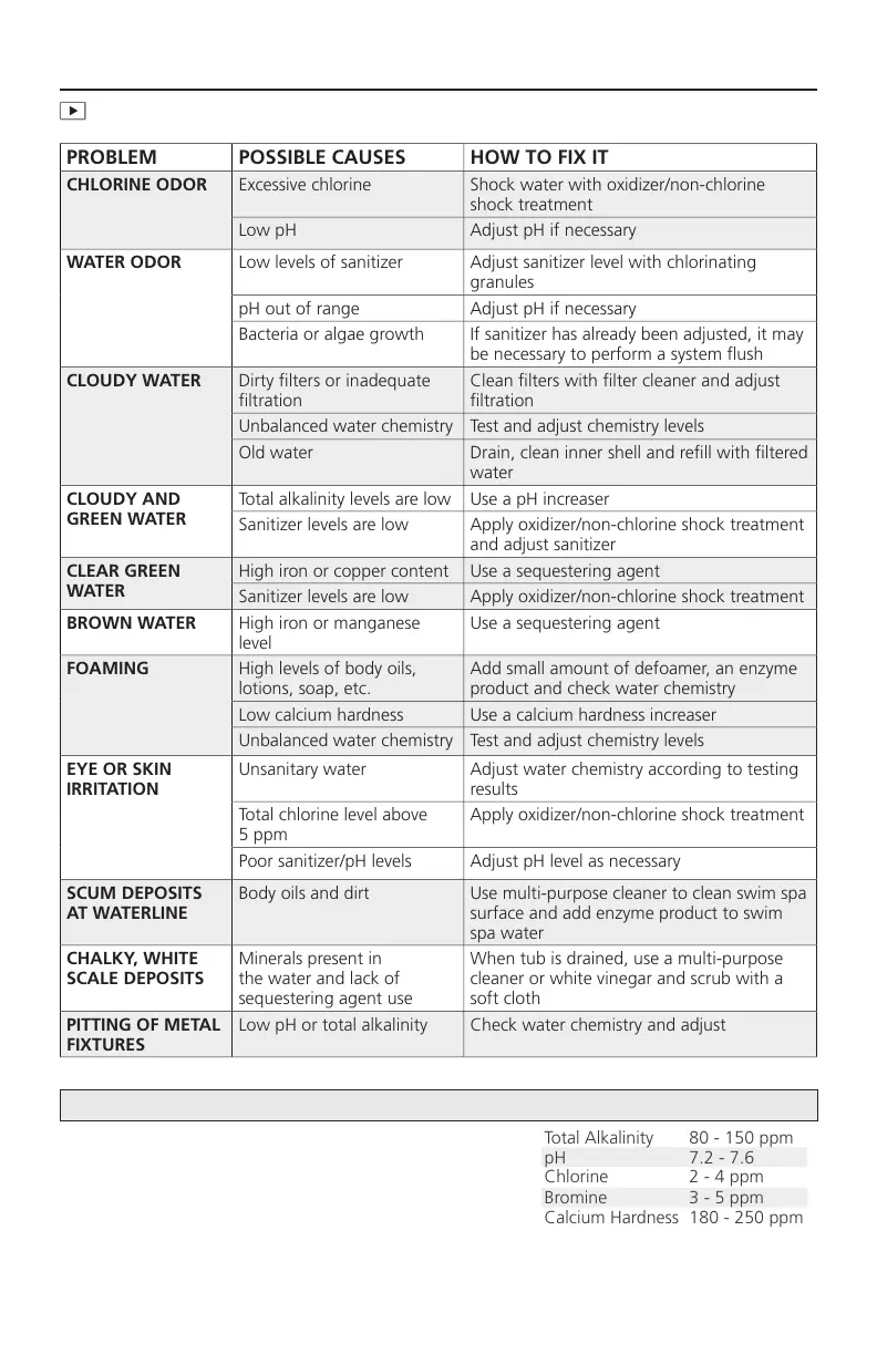 WATER ODOR Low levels of sanitizer Adjust sanitizer level with chlorinating