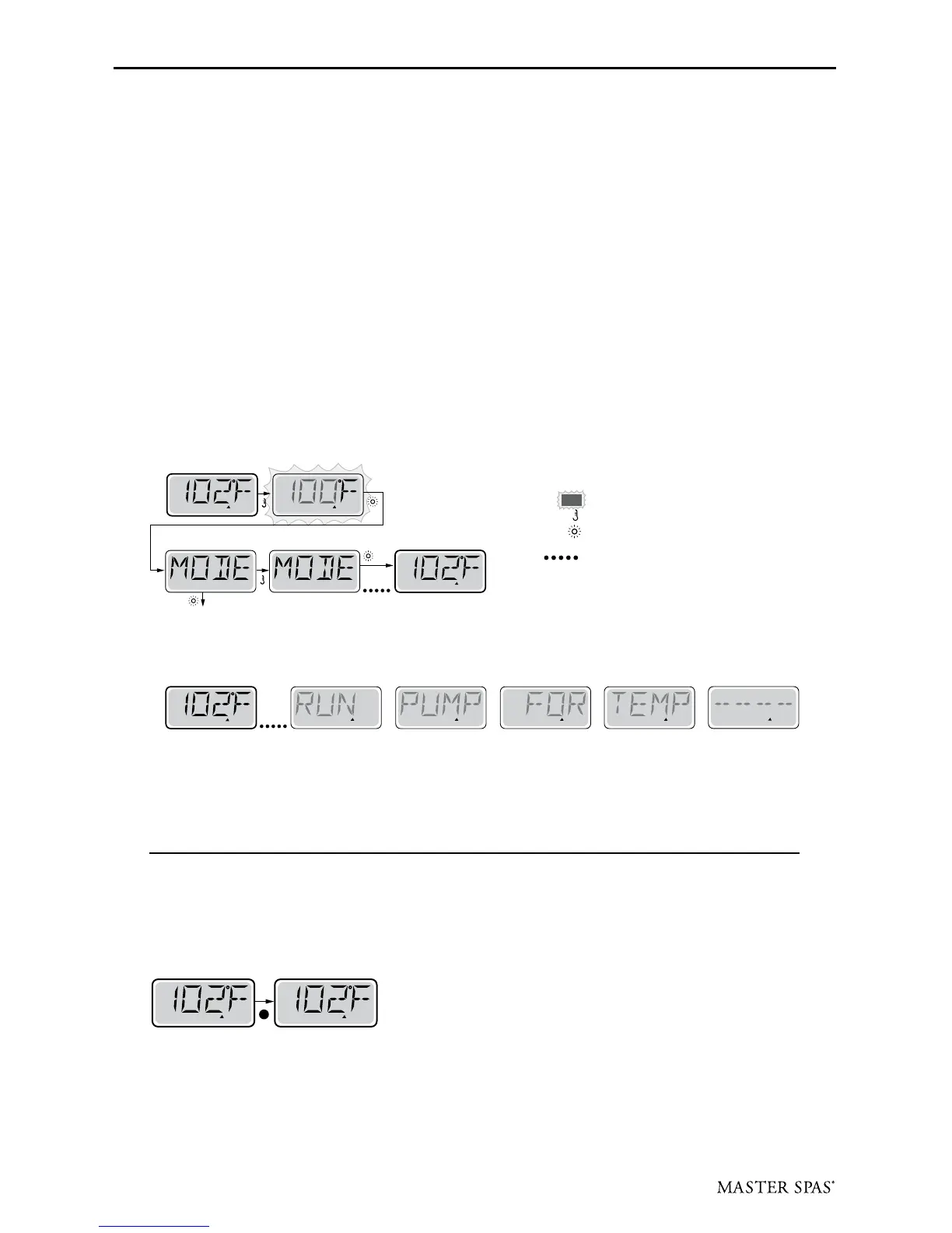 READY Mode will allow the spa to Poll and determine a need for heat. The panel will maintain a “current” temperature display.