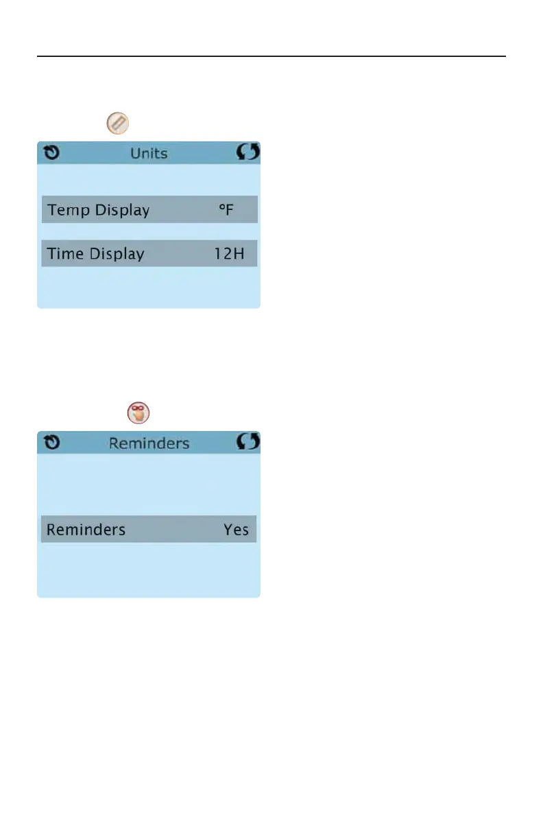 Press “Reminders“ to turn the reminder messages (like “Clean Filter”) ON (Yes) or OFF (No).