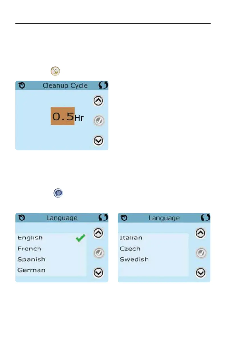 on the Settings Screen takes you to the Cleanup Cycle screen.