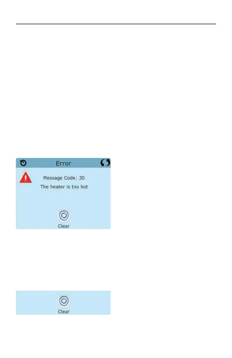 been resolved, you must reset the message* to restart heater start up. See “Flow Related Checks”