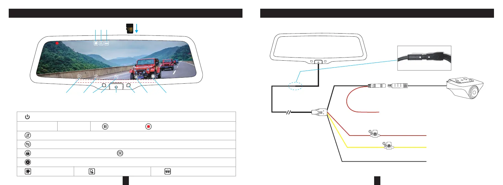 1: short press to turn on/ off the screen; Long press to turn off the mirror, then short press to restart