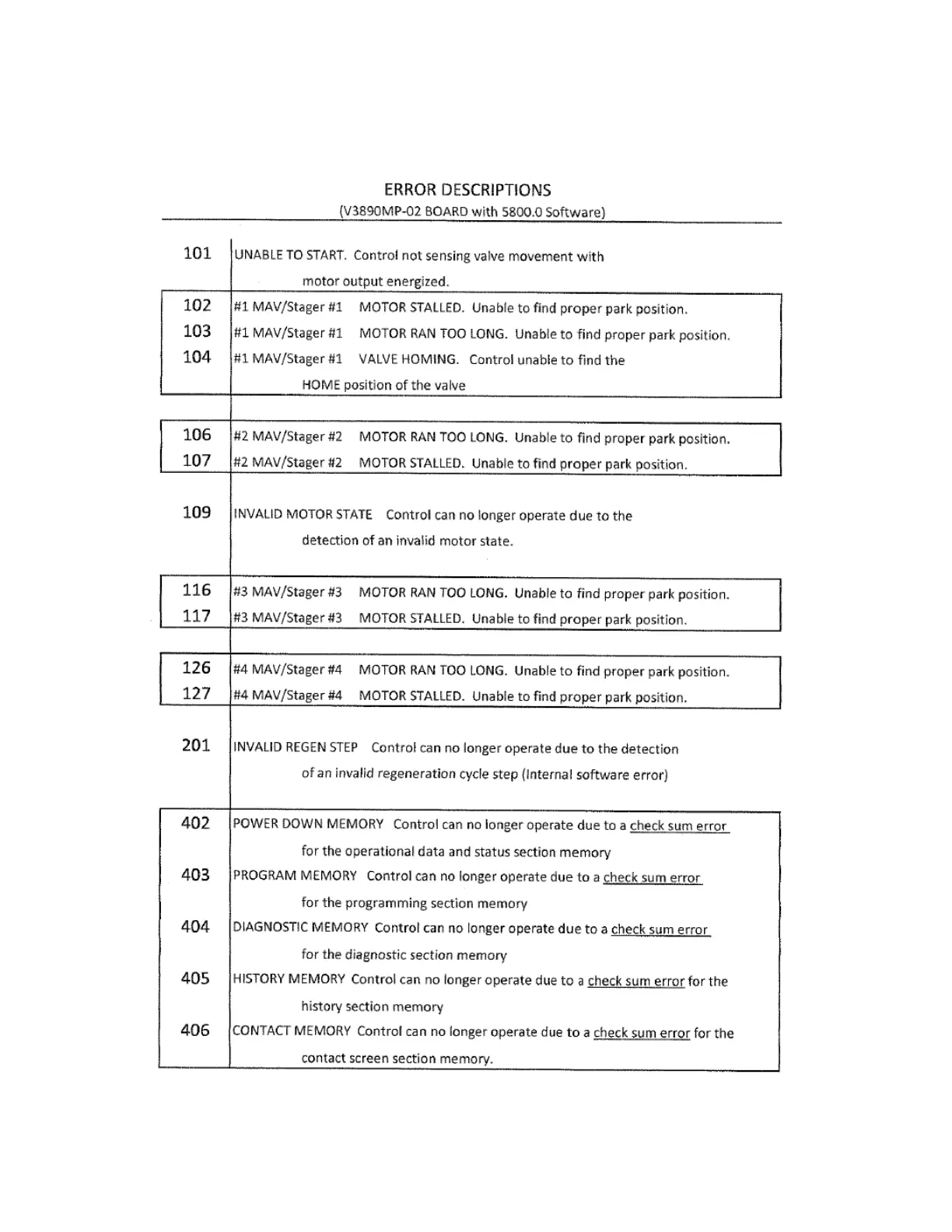 ERROR CODES