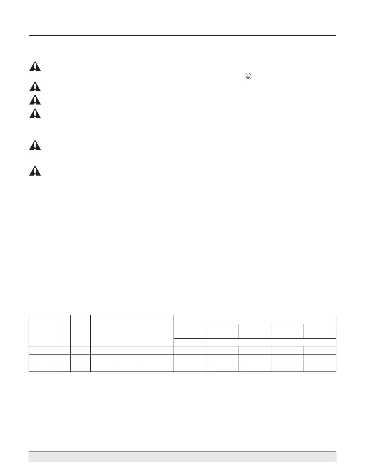 Use alambres del tamaño especificado en la Tabla de