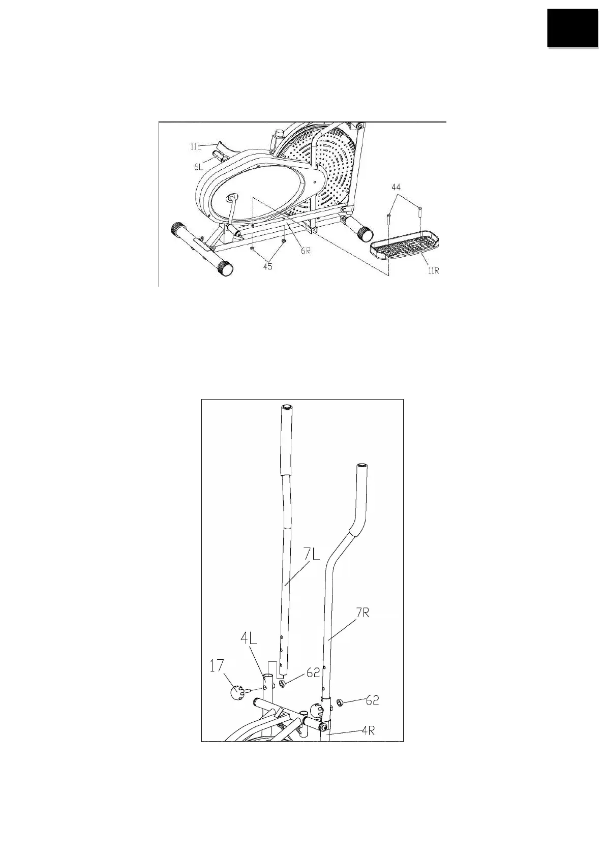 Należy przymocować podstawę pedała (4 w prawo, 5 w lewo) do części głównej przez oś ramion. Jeśli podczas