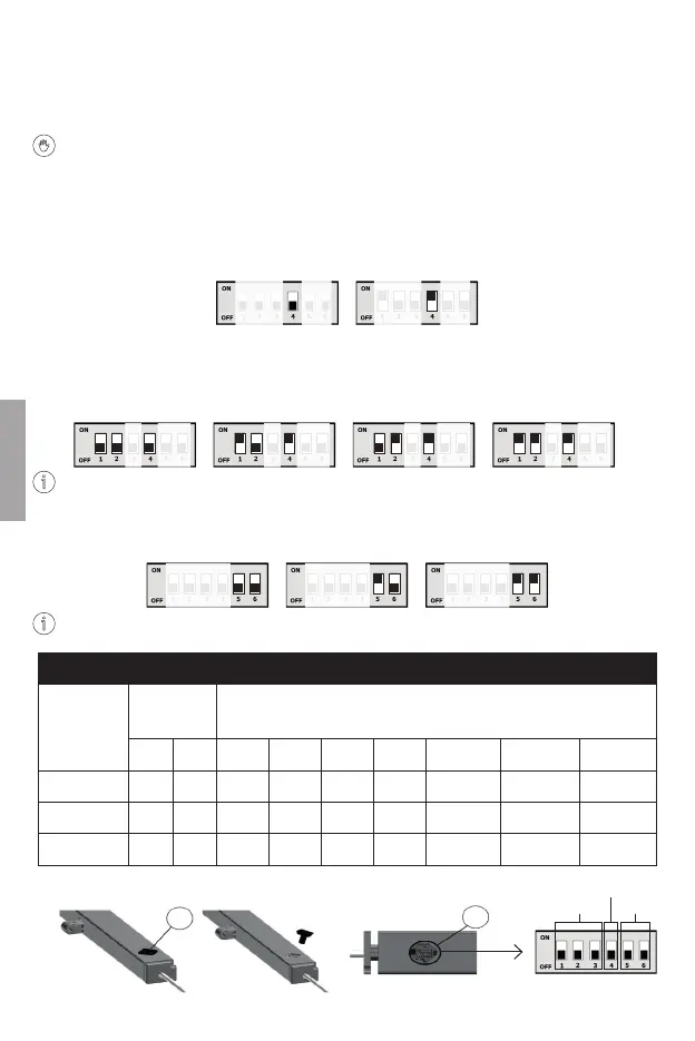 Para cambiar el recorrido del actuador, gire los interruptores DIP 5 y 6 a la posición OFF. (ver tabla de