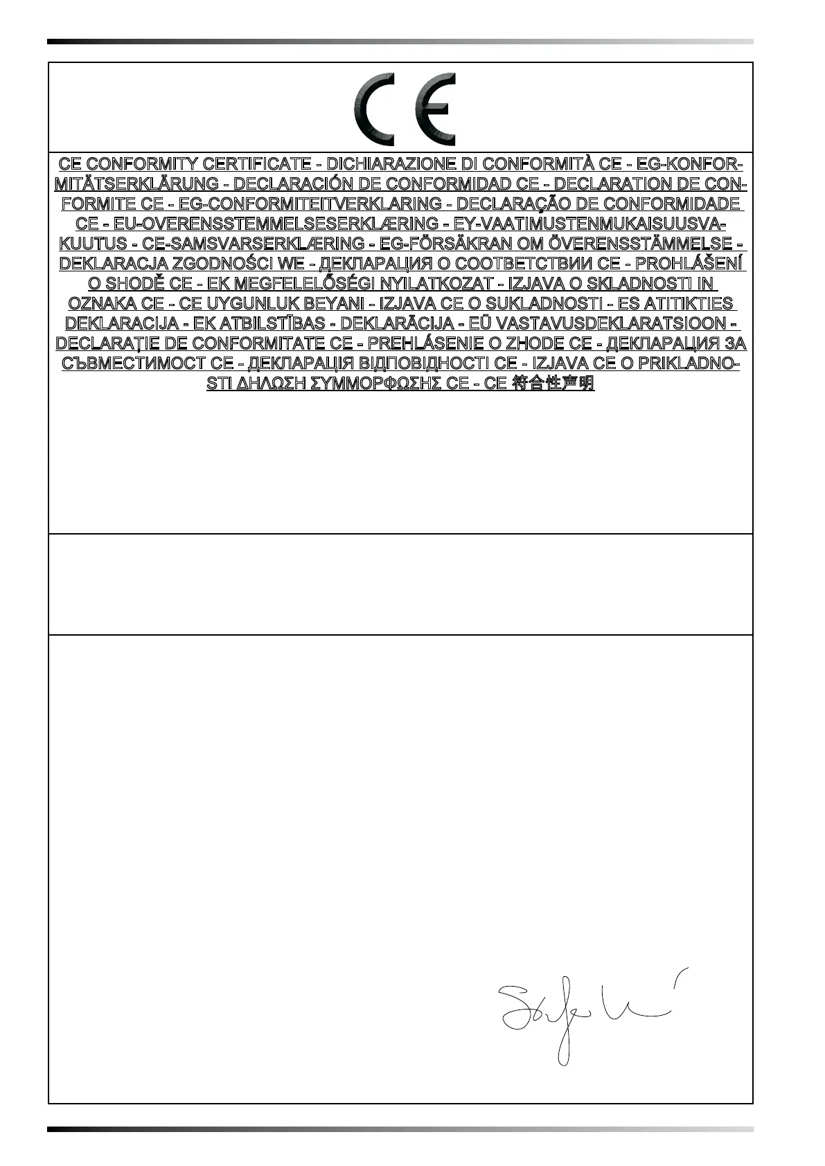 CE CONFORMITY CERTIFICATE - DICHIARAZIONE DI CONFORMITÀ CE - EG-KONFOR-
