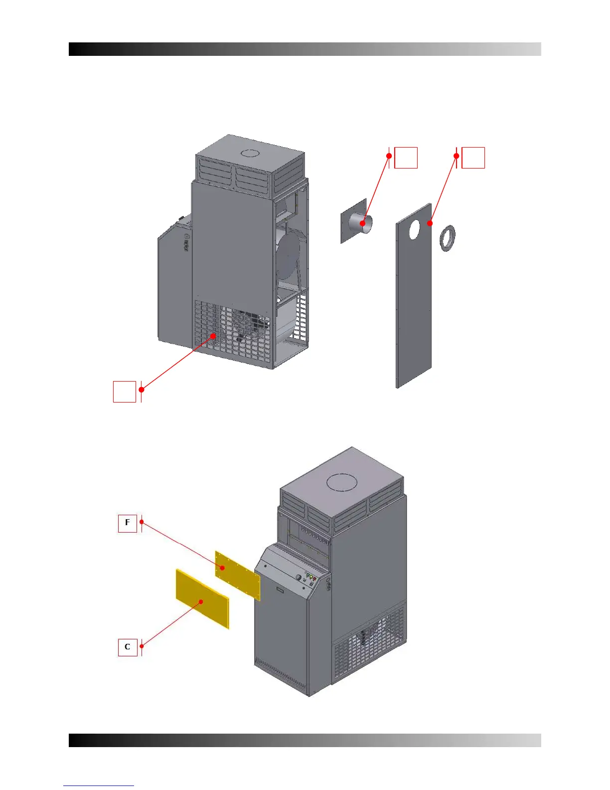 To reach the internal part of the heat exchanger and the combustion chamber, remove the burner, the back lower