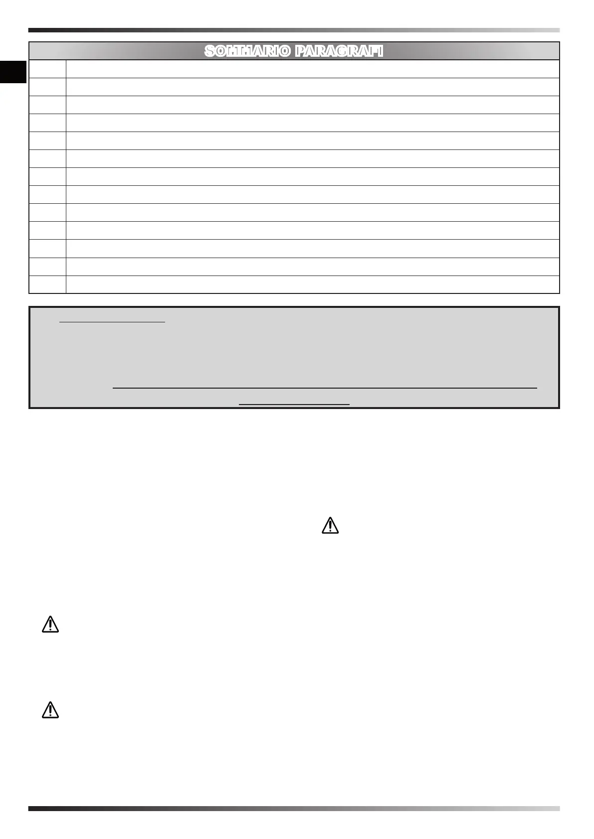 GRAVI. CONSERVARE QUESTO MANUALE A TITOLO DI FUTURO