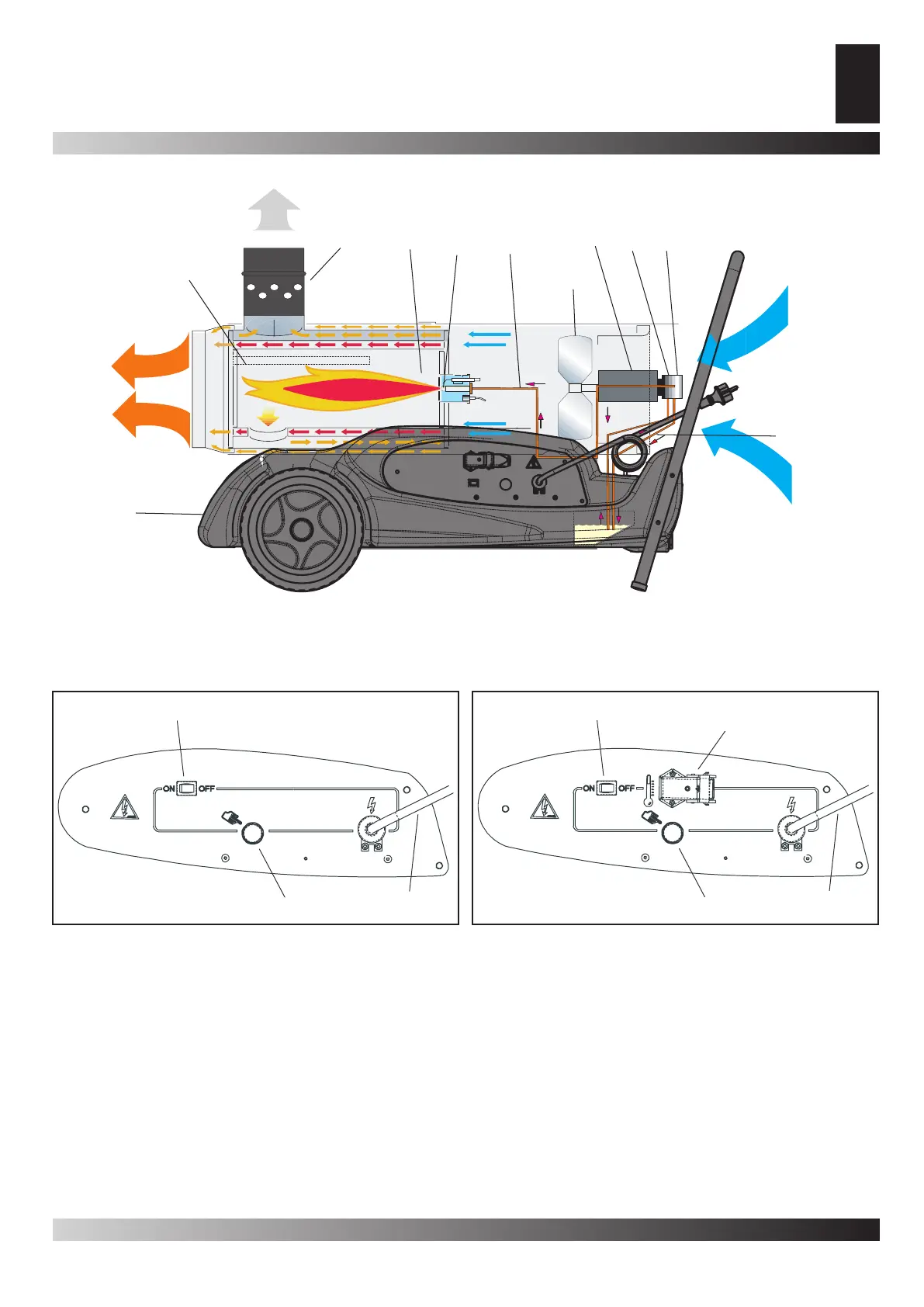 Moottori, 9. Tuuletin, 10. Filter, 11. Polttoainesäiliö.