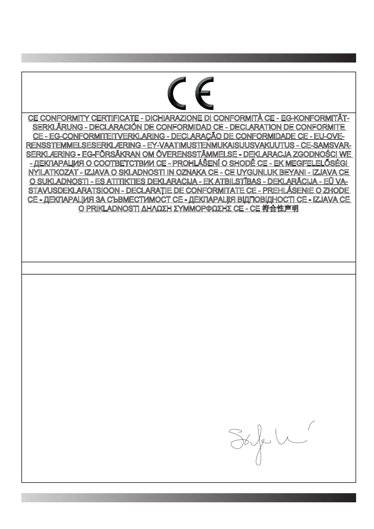 CE CONFORMITY CERTIFICATE - DICHIARAZIONE DI CONFORMITÀ CE - EG-KONFORMITÄT-