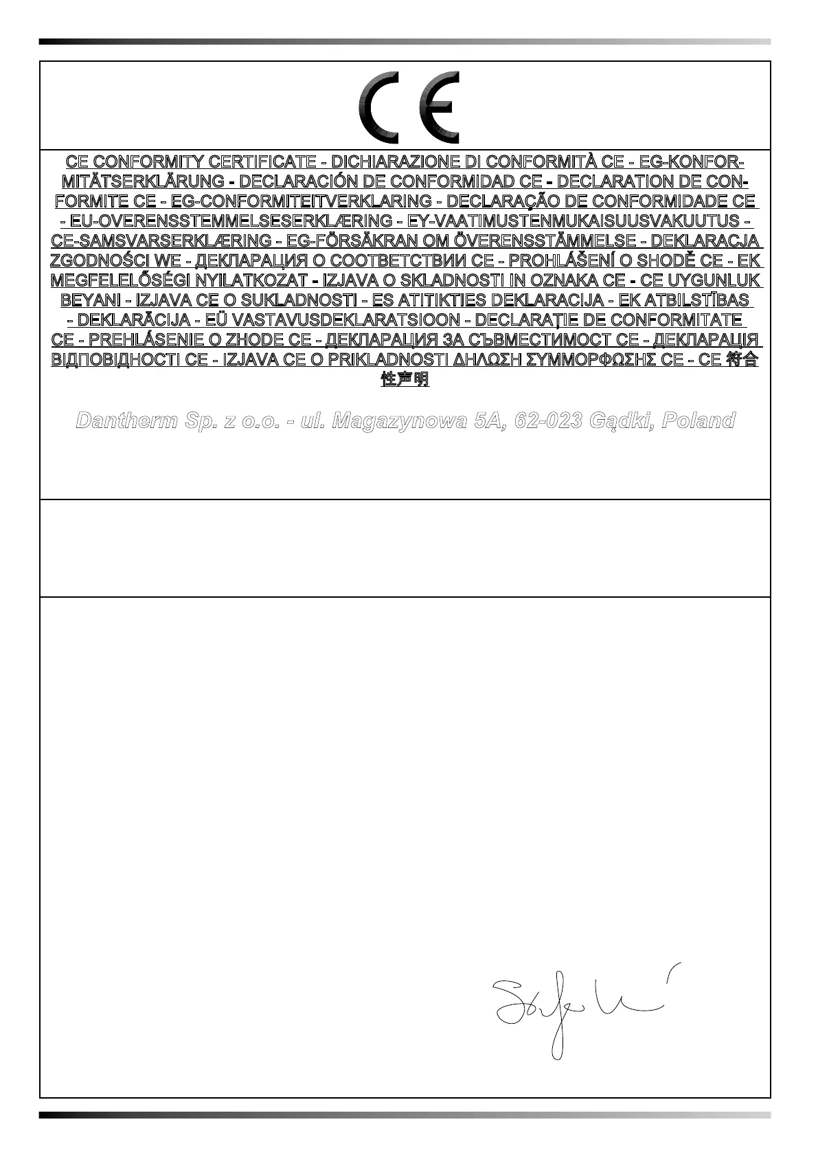 CE CONFORMITY CERTIFICATE - DICHIARAZIONE DI CONFORMITÀ CE - EG-KONFOR-