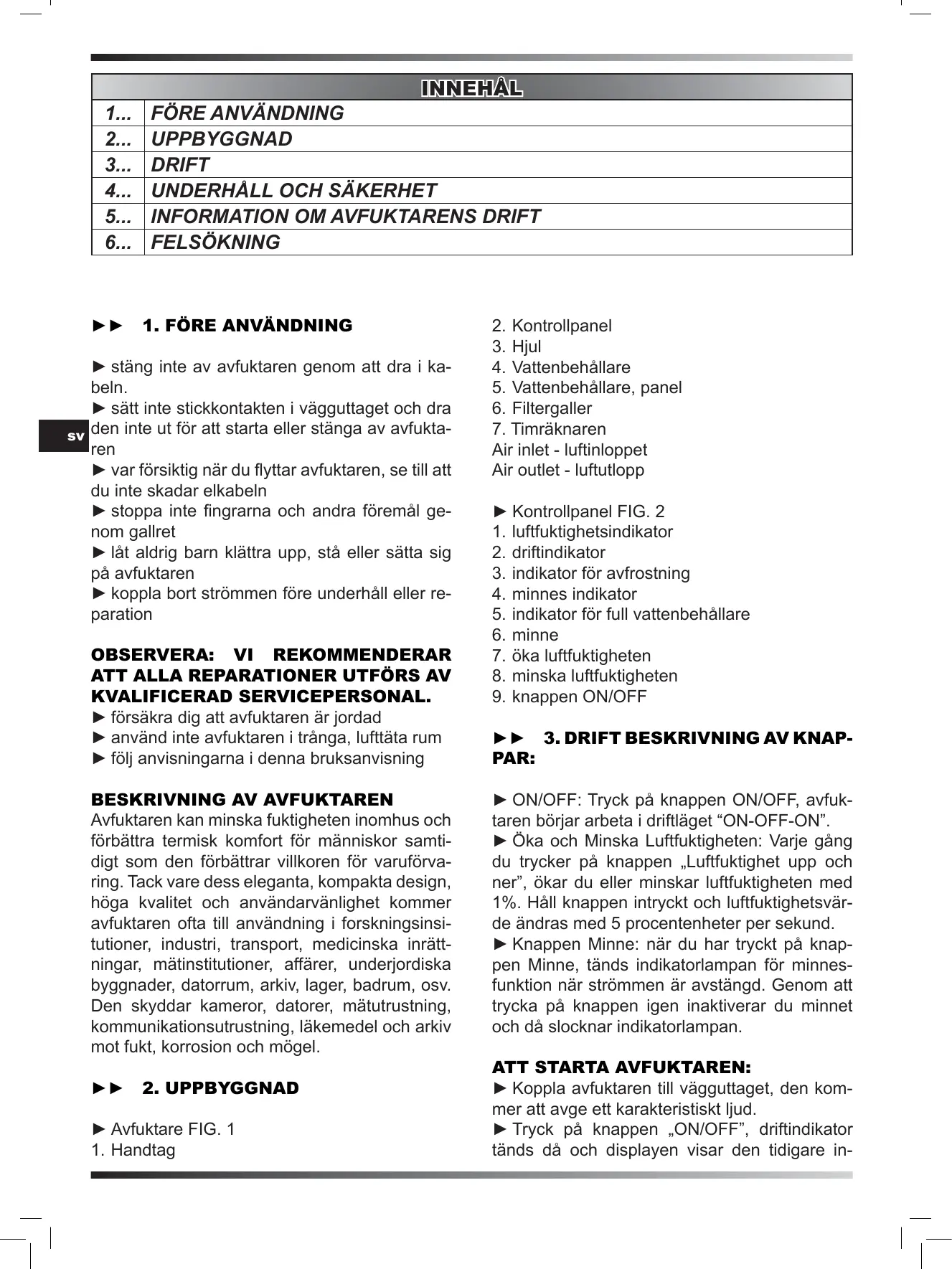 5... INFORMATION OM AVFUKTARENS DRIFT