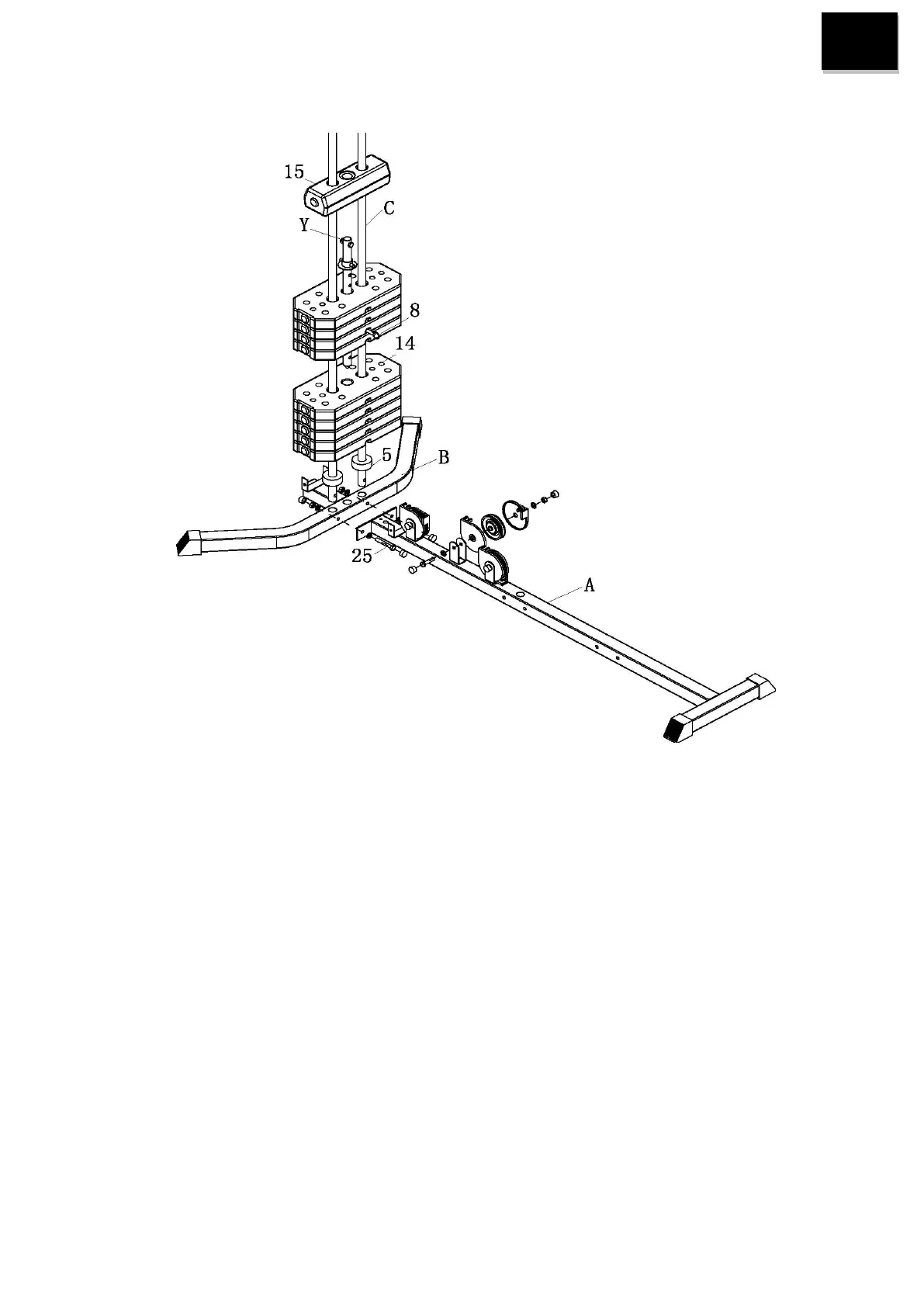 3. Należy nasunąć obciążniki (14) i obciążnik górny (15) na drążki stosu (C).