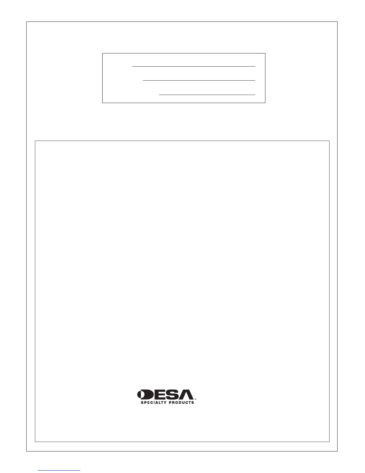 DESA Specialty Products™ warrants each generator, excluding engine, of its manufacture, to be free from defects in