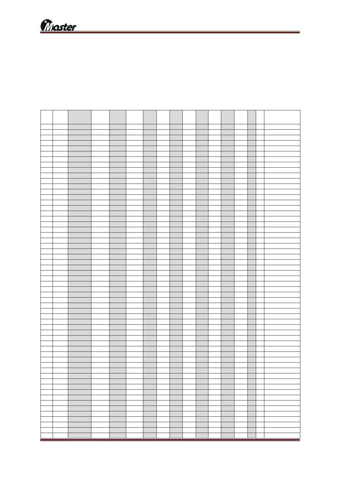 Below has 701~999 default timing list and please contact to Master co., ltd for 1~700