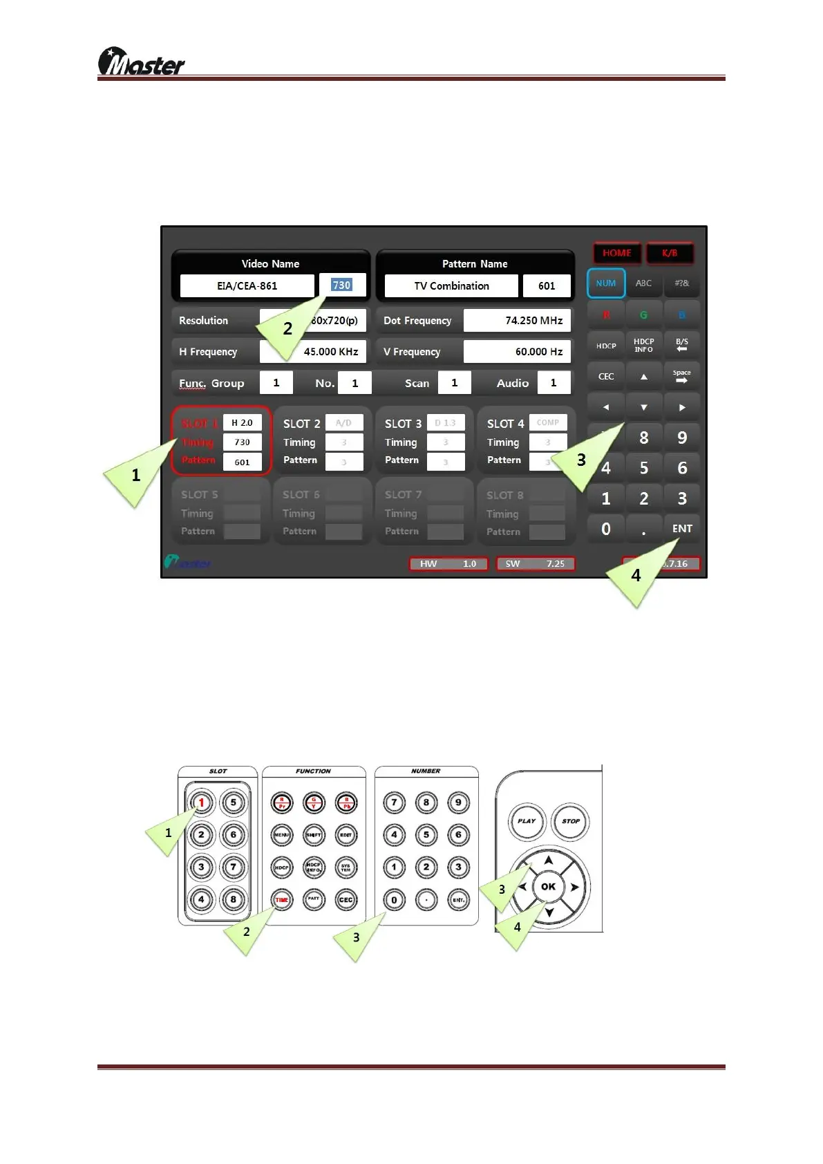 ④ Press “ENT” button to run Selected timing will output to display equipment.