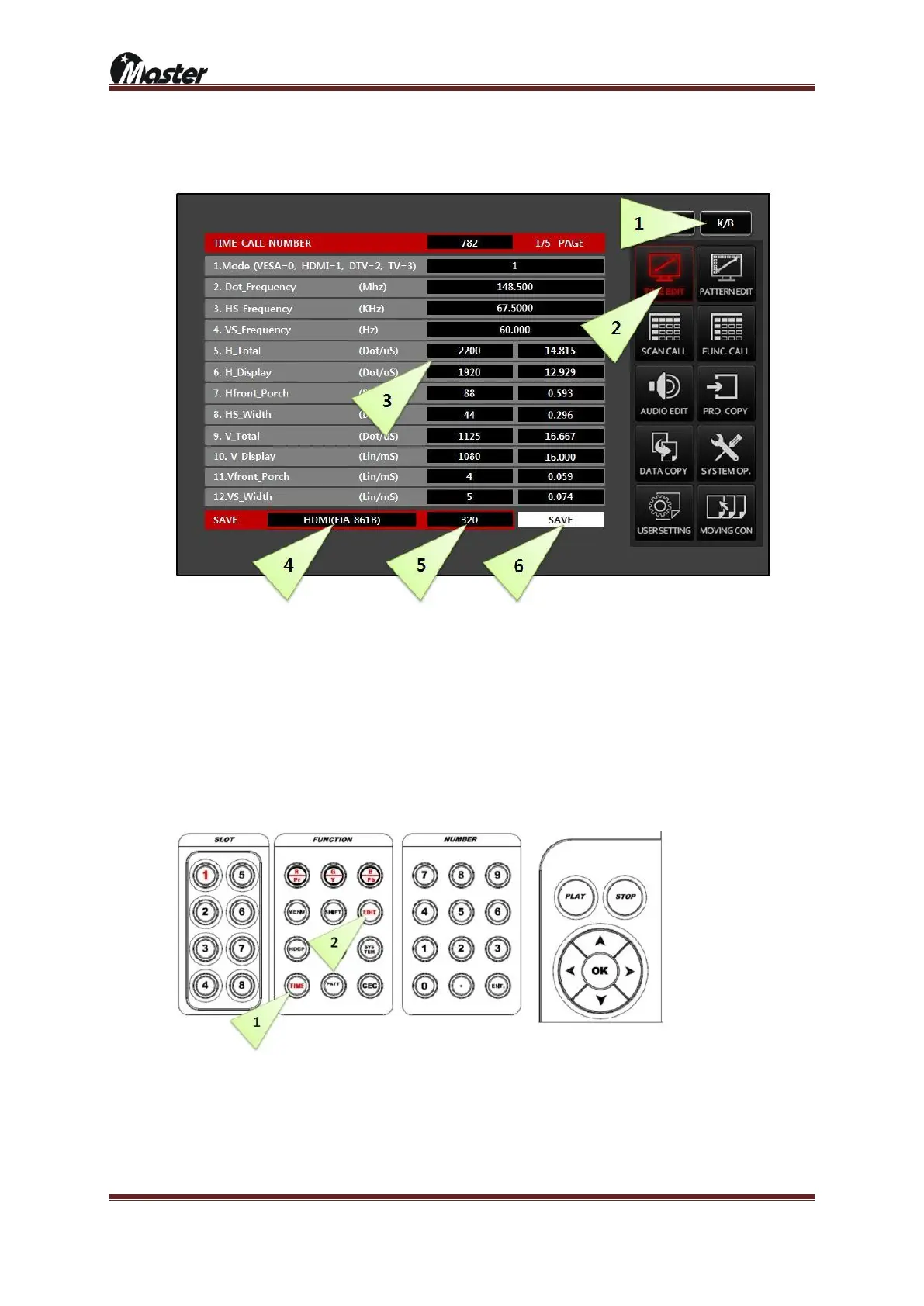② Press “TIME EDIT” button to activate timing edit list.