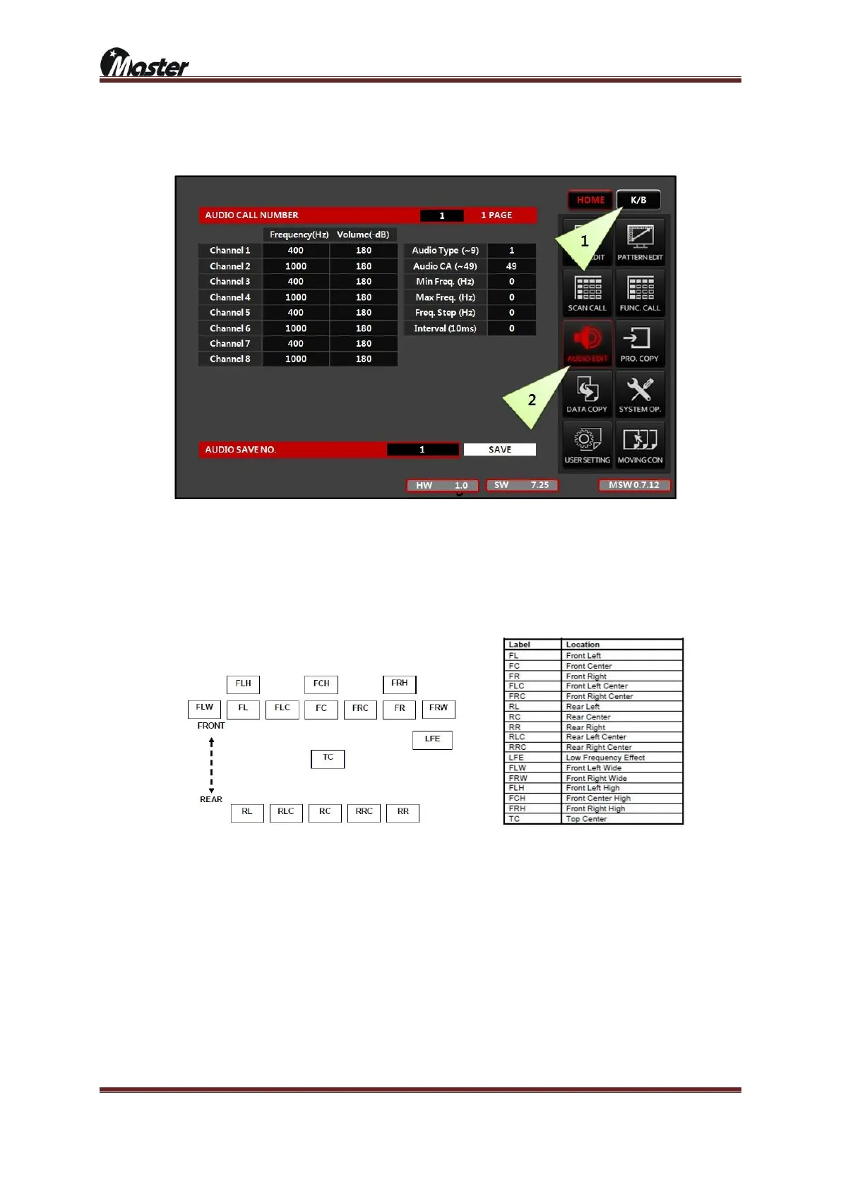 ② Press “K/B” button and press “AUDIO EDIT” button for activate audio edit list.