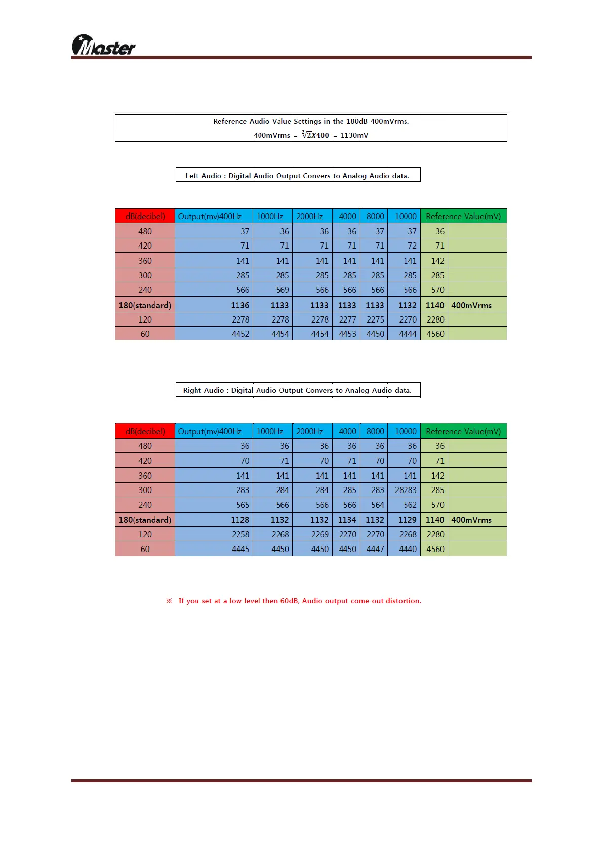 4) Audio setting with current value