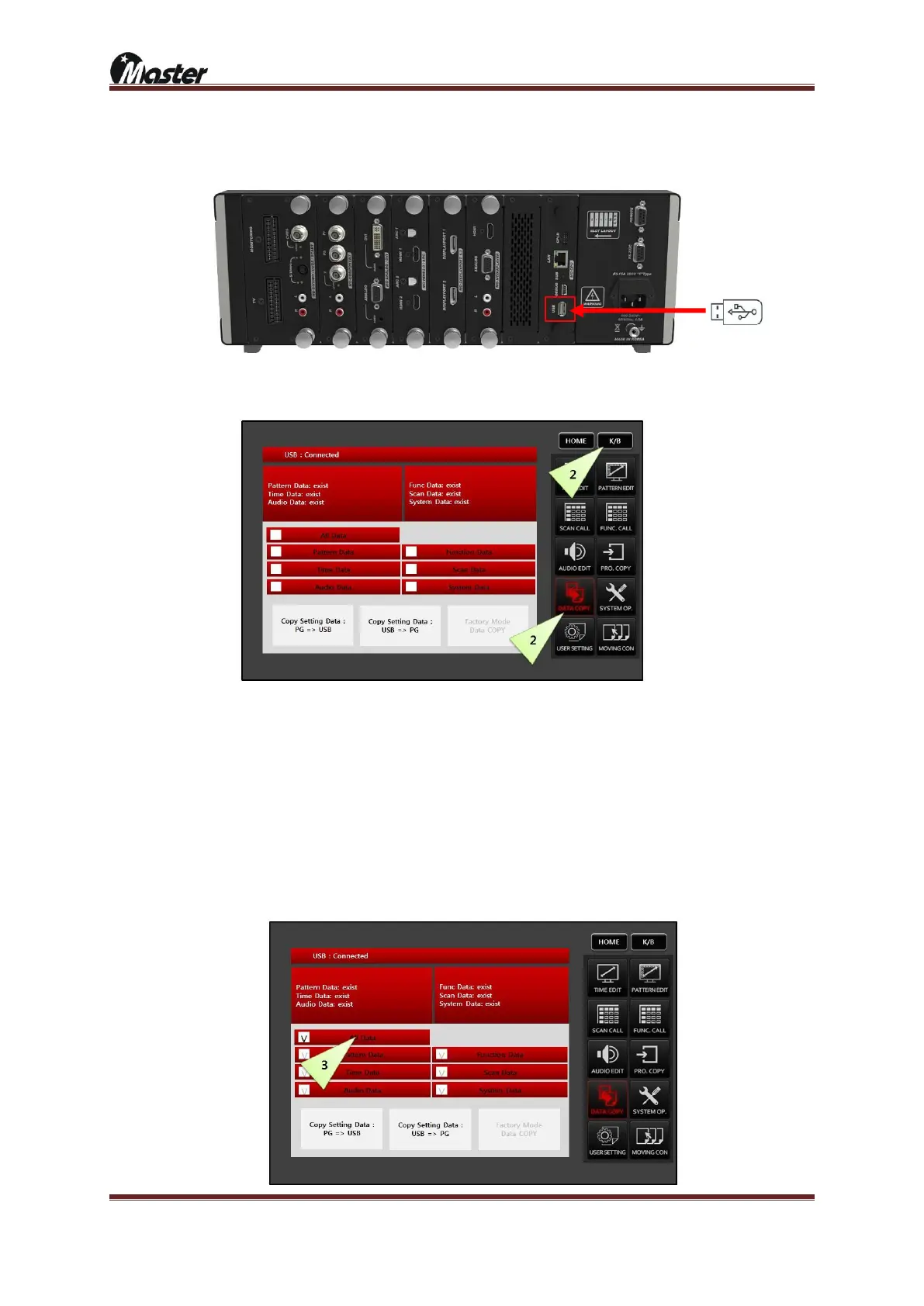 ① Connect USB stick to MSPG-8000’s rear USB port and wait 5second for recognize USB.