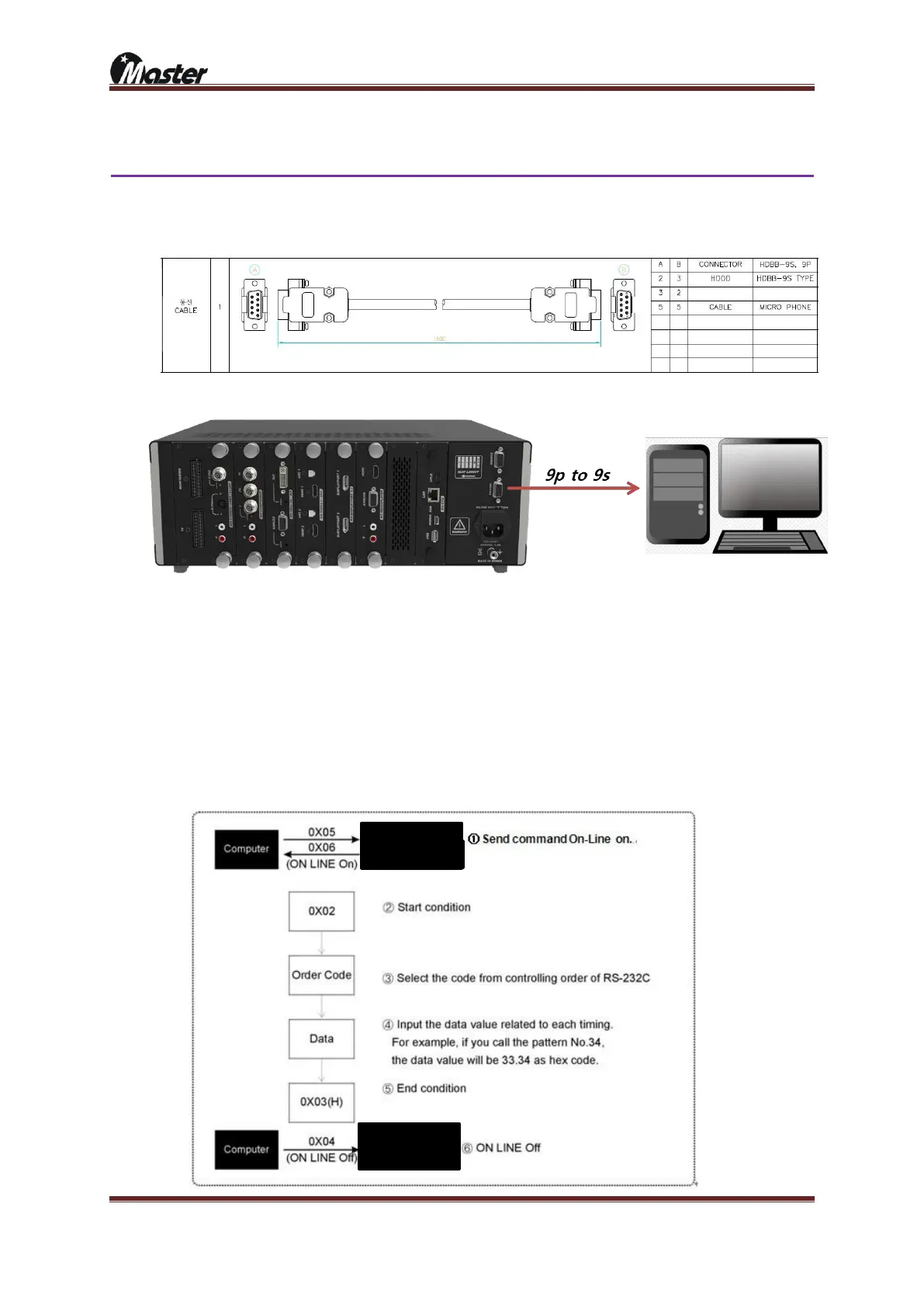 1) Prepare to 9p to 9s.(Use the cable provided from Master Co., Ltd)
