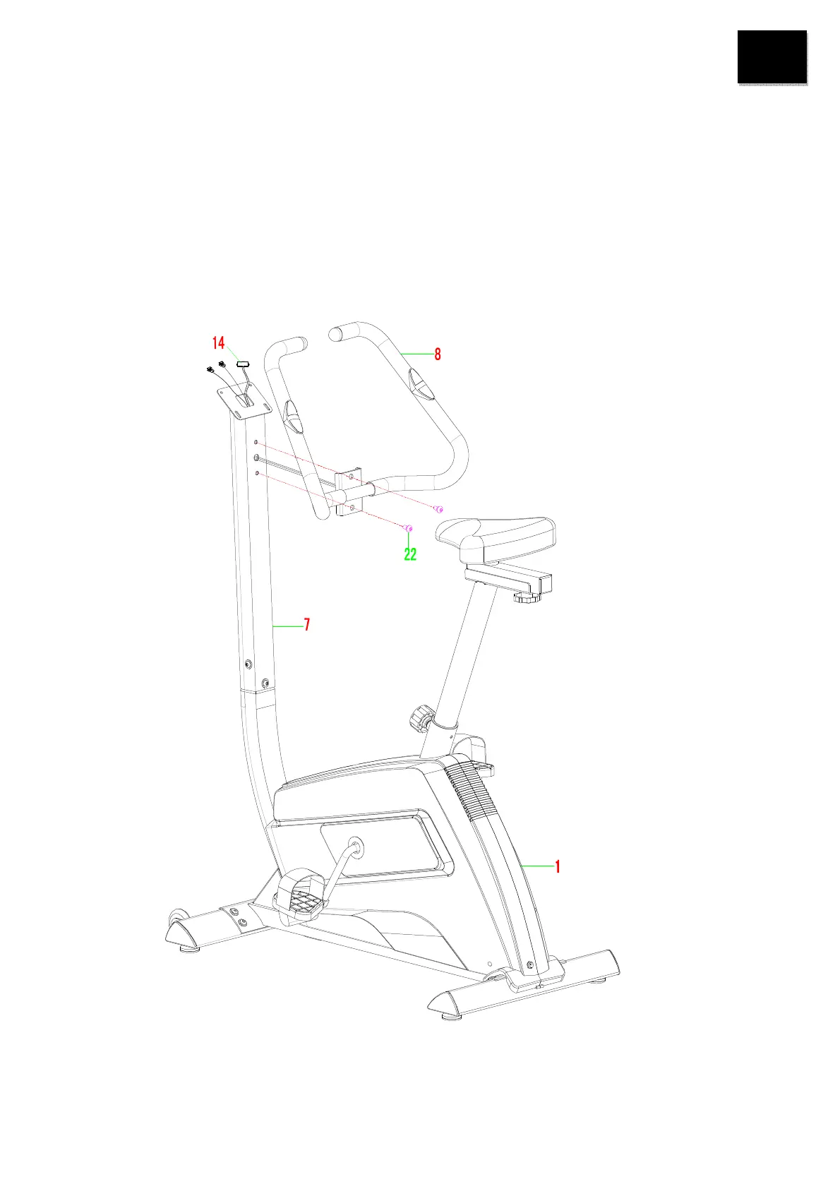 Lenker (8) an der vorderen Stange (7) mithilfe von 2 Schrauben M8x16 (22), die Sie vorher