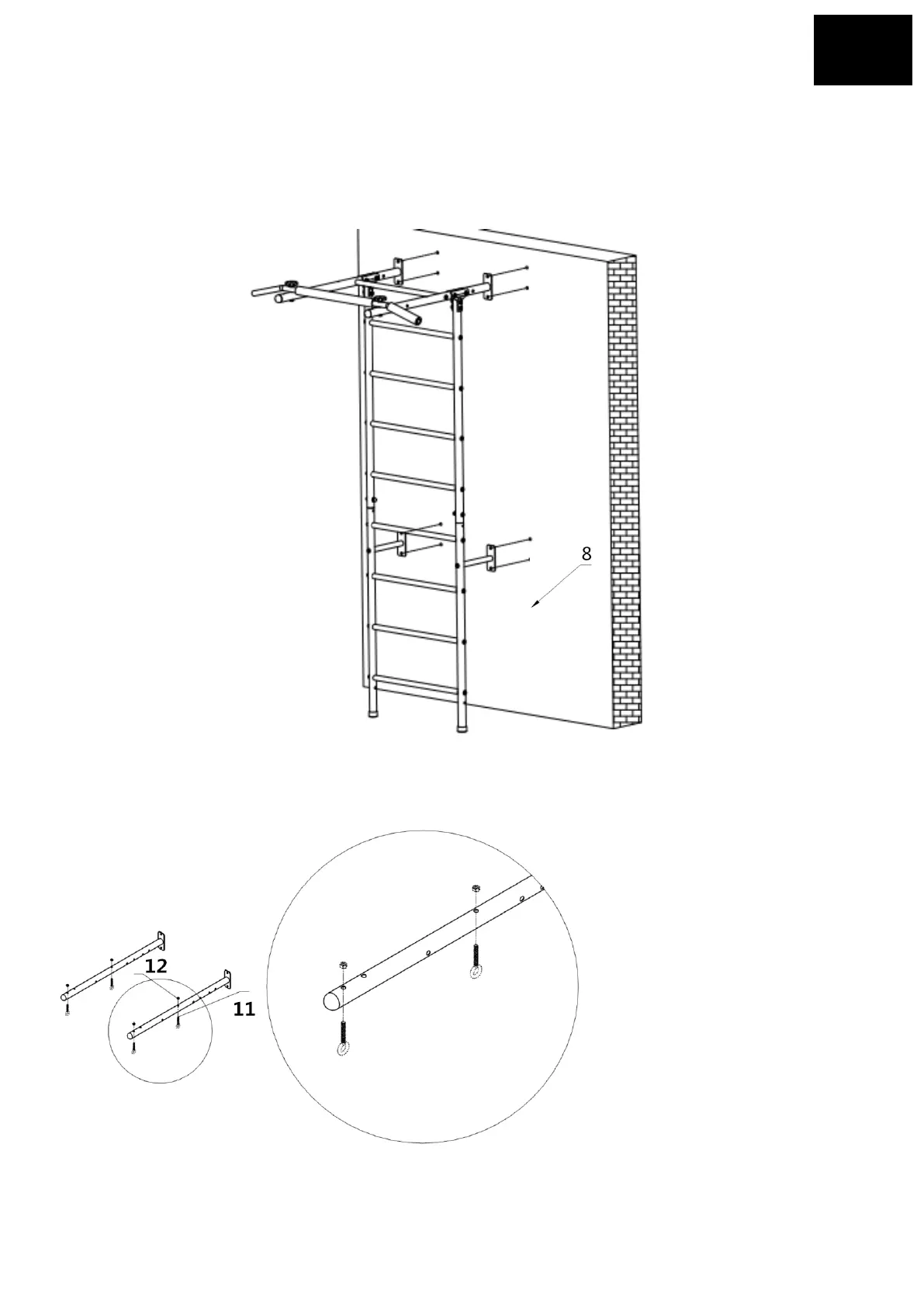 gzítse a terméket a falra a 8-as alkatrész (8 db) segítségével.