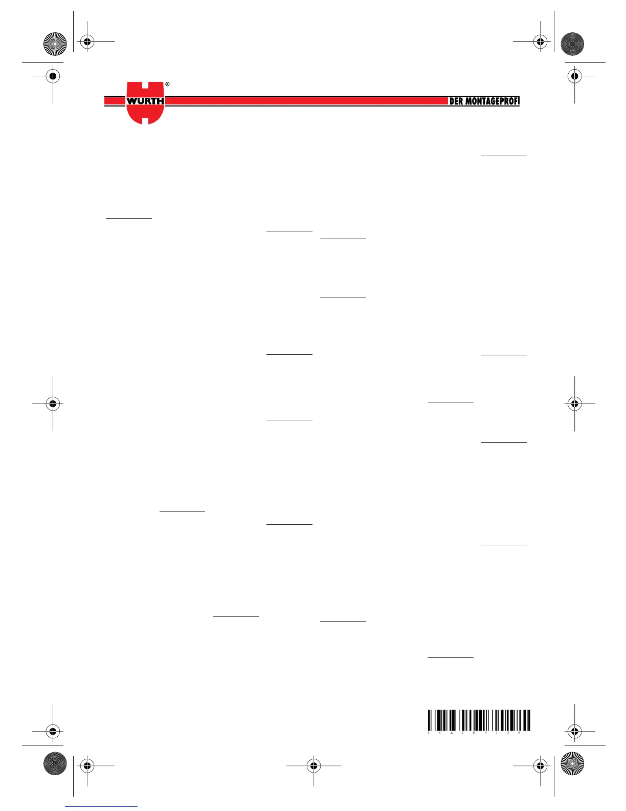 0714 640 760 BA 0805 - Printed in Germany - Imprimé en Allemagne MWV-OSW-05.08 • © by Adolf Würth & Co. KG • Nachdruck, auch auszugsweise, nur mit Genehmigung.
