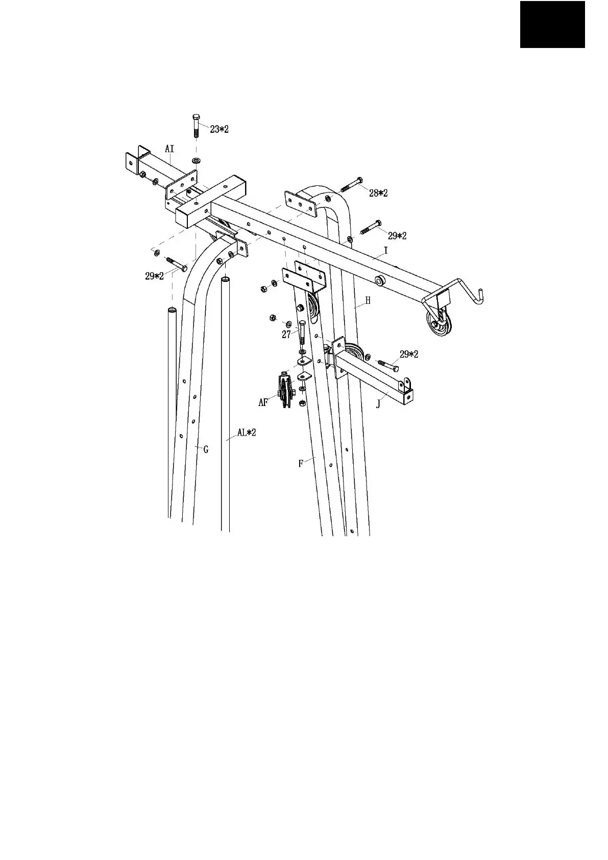 6. PRIPOJTE VERRTIKÁLNE KLADKY (AF) K HLAVNEJ VERTIKALNEJ OPORE (F) DVOMA