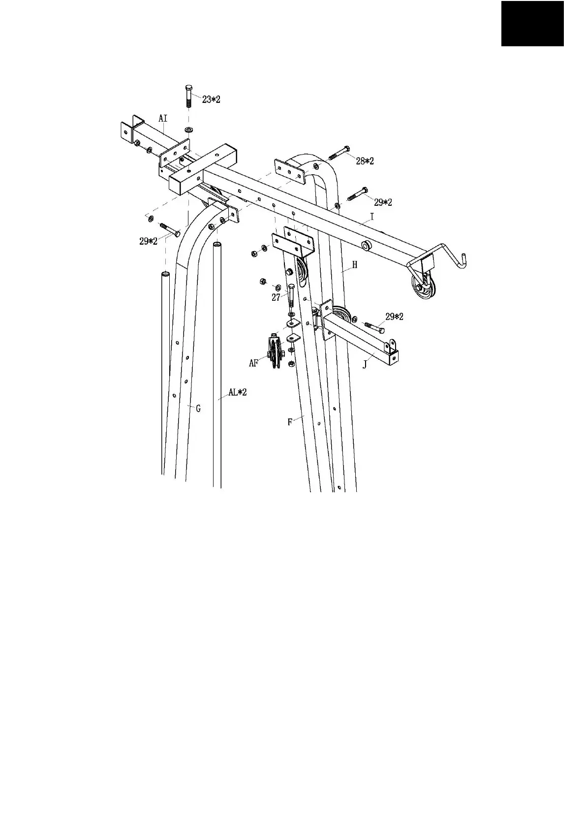 5. BEFESTIGEN SIE DEN OBEREN HINTEREN KREUZHALTER (AI) MIT ZWEI SCHRAUBEN M10*70 UND