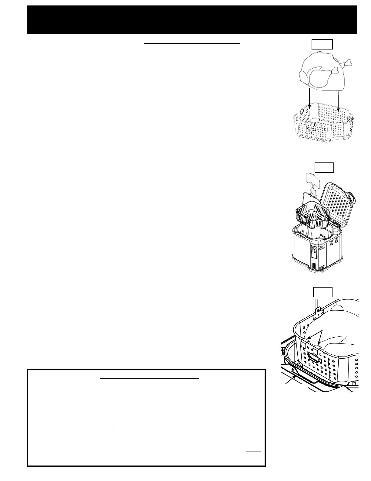 SLOWLY lower the basket into the hot oil (Fig. B).