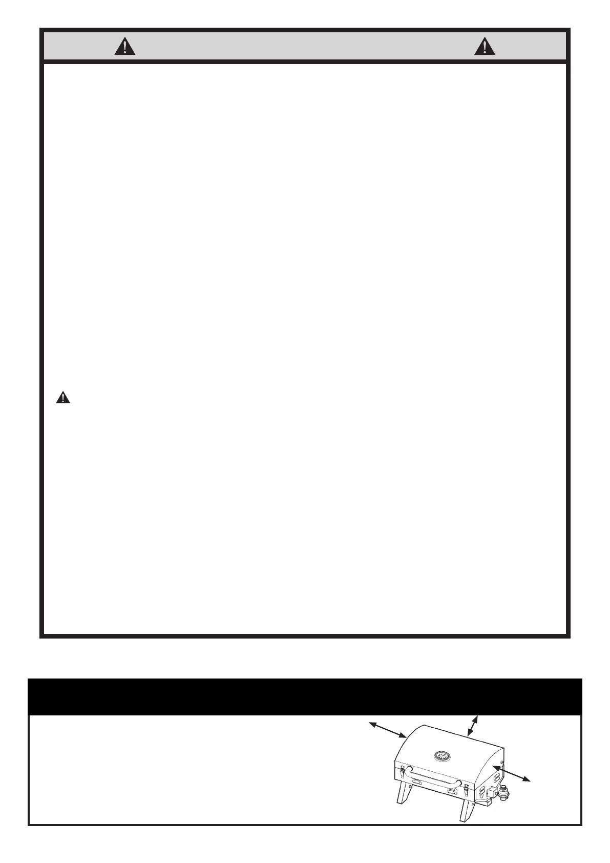 • DO NOT store a spare LP gas cylinder under or near this appliance. A re causing death or serious