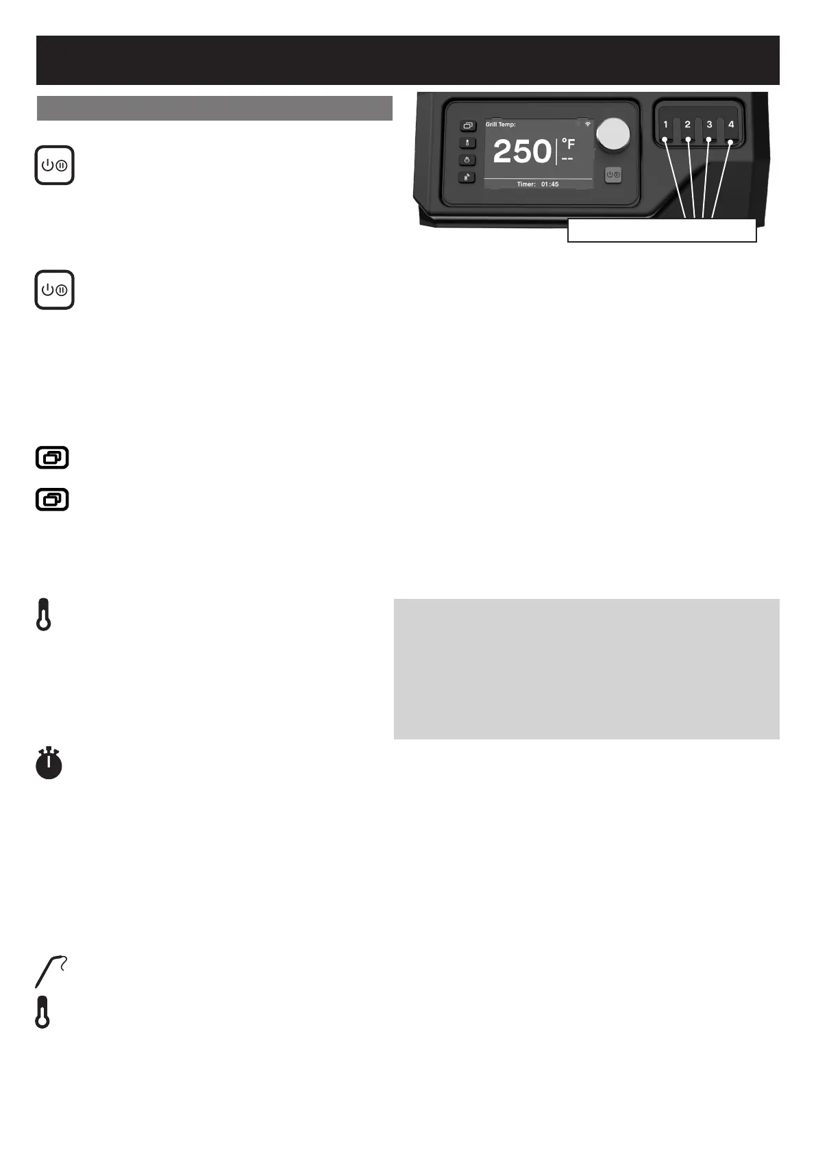 pantalla también se desactivará si: una sonda de carne ha alcanzado la temperatura configurada, se