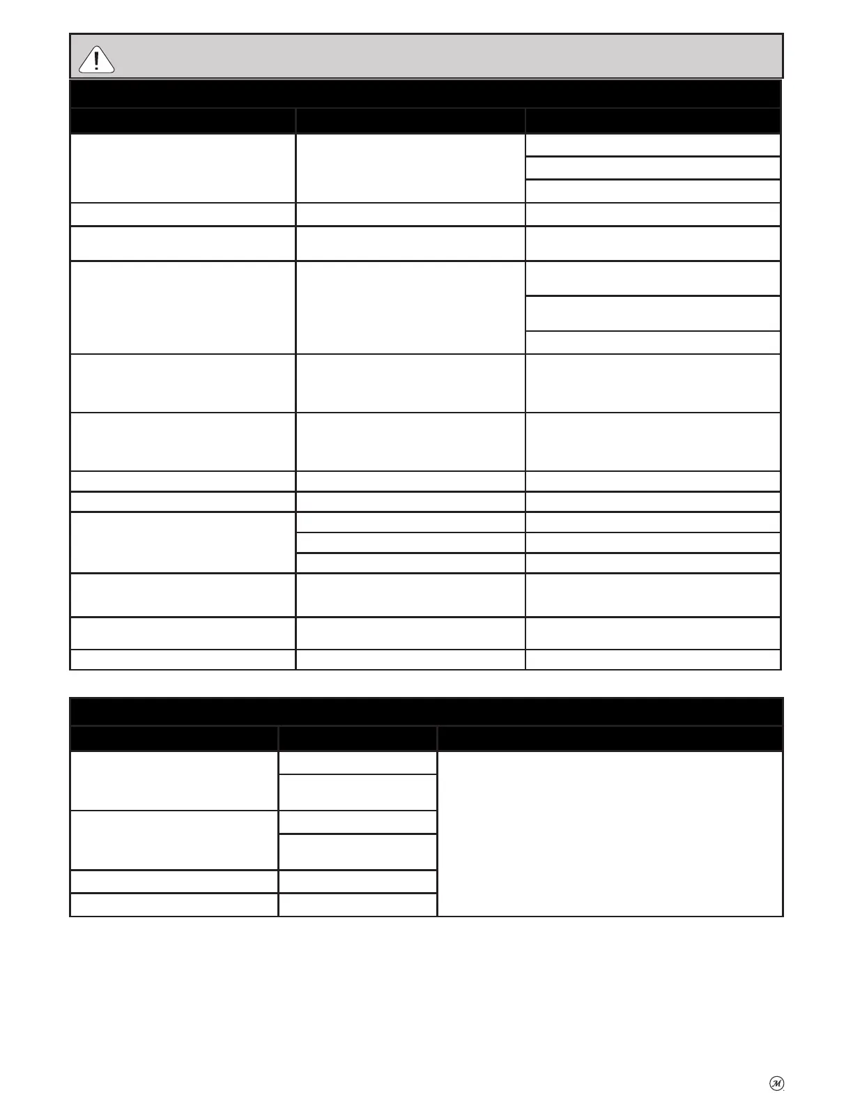 Flashback (fi re in burner tube) Burner and/or burner tube has blockage Turn burner control knob and gas cylinder valve off .
