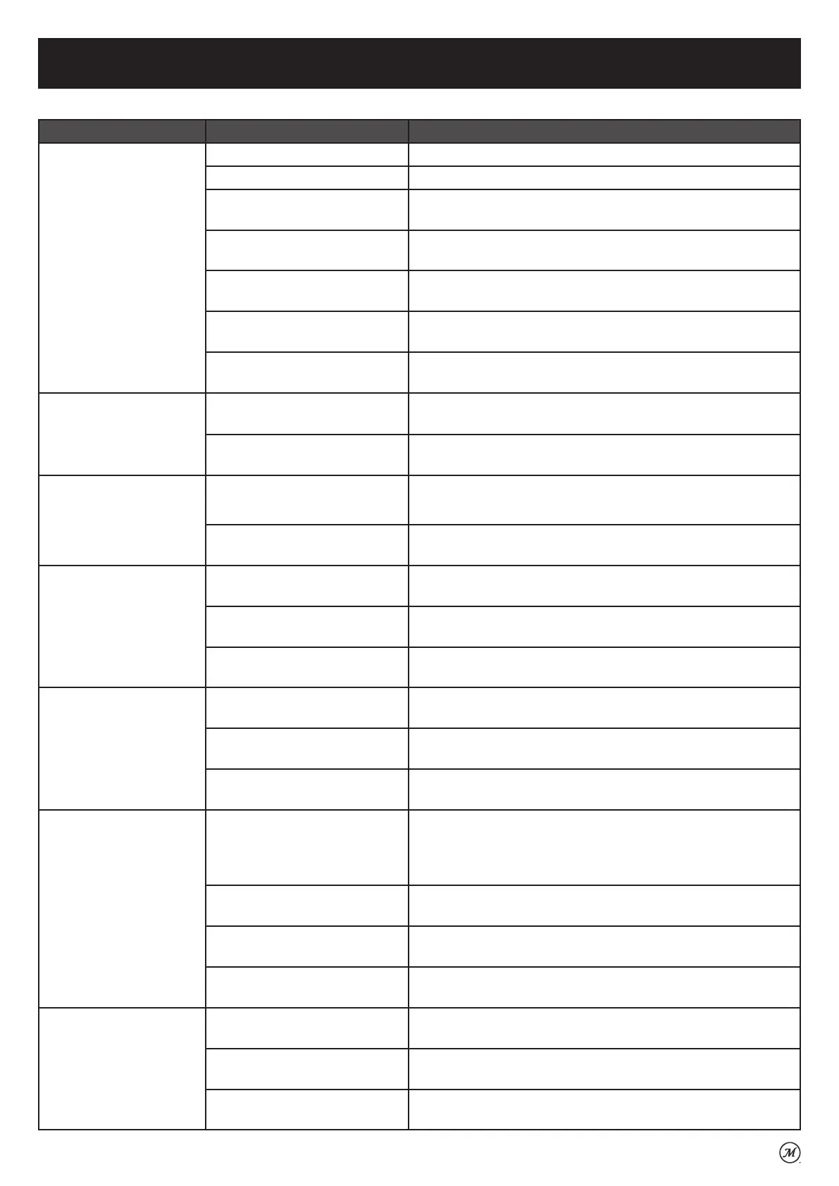 SYMPTOM CAUSE POSSIBLE SOLUTION