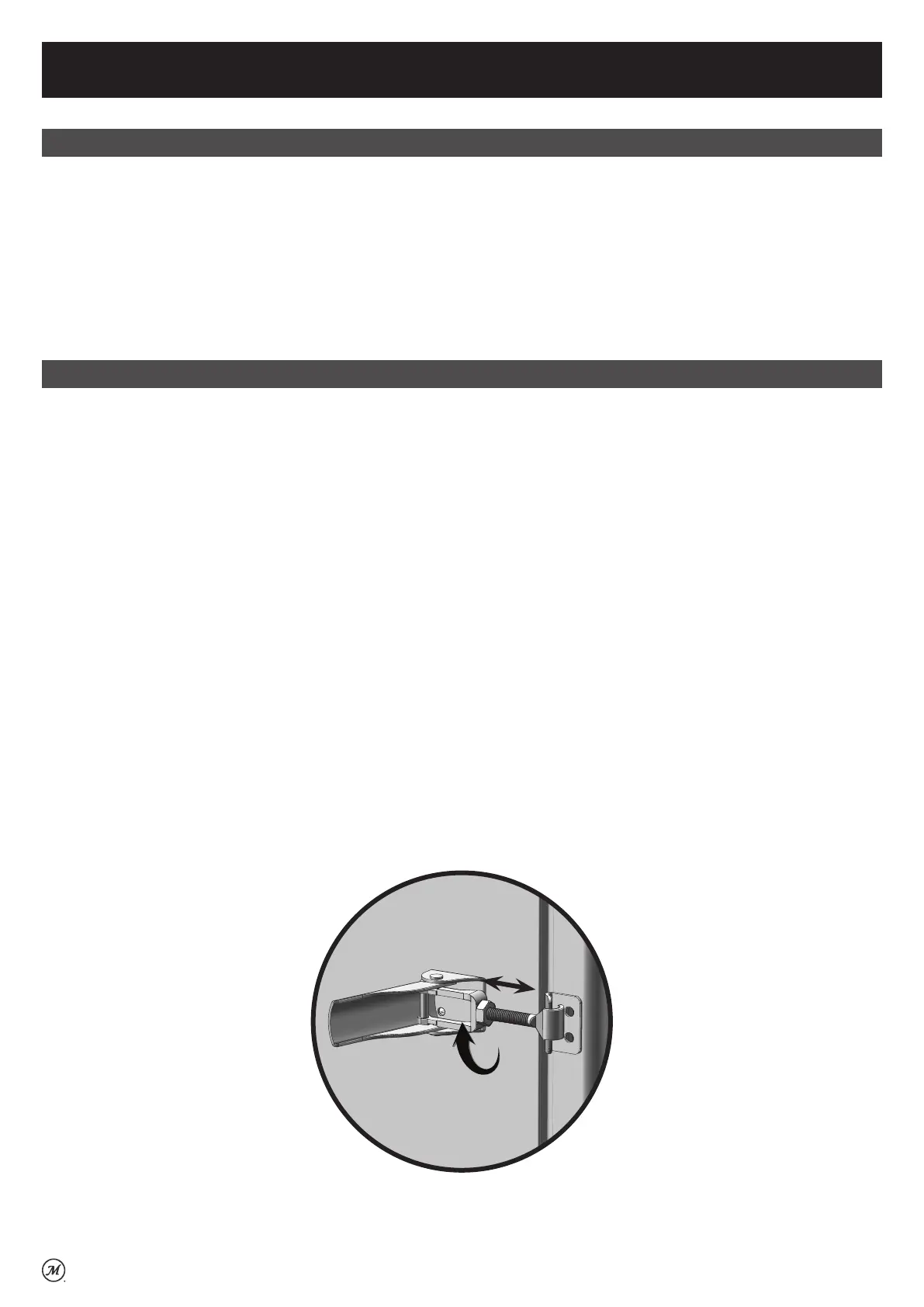 • Pour ajuster le loquet de porte, desserrez l’écrou hexagonal sur le loquet. Pour serrer, tourner le crochet