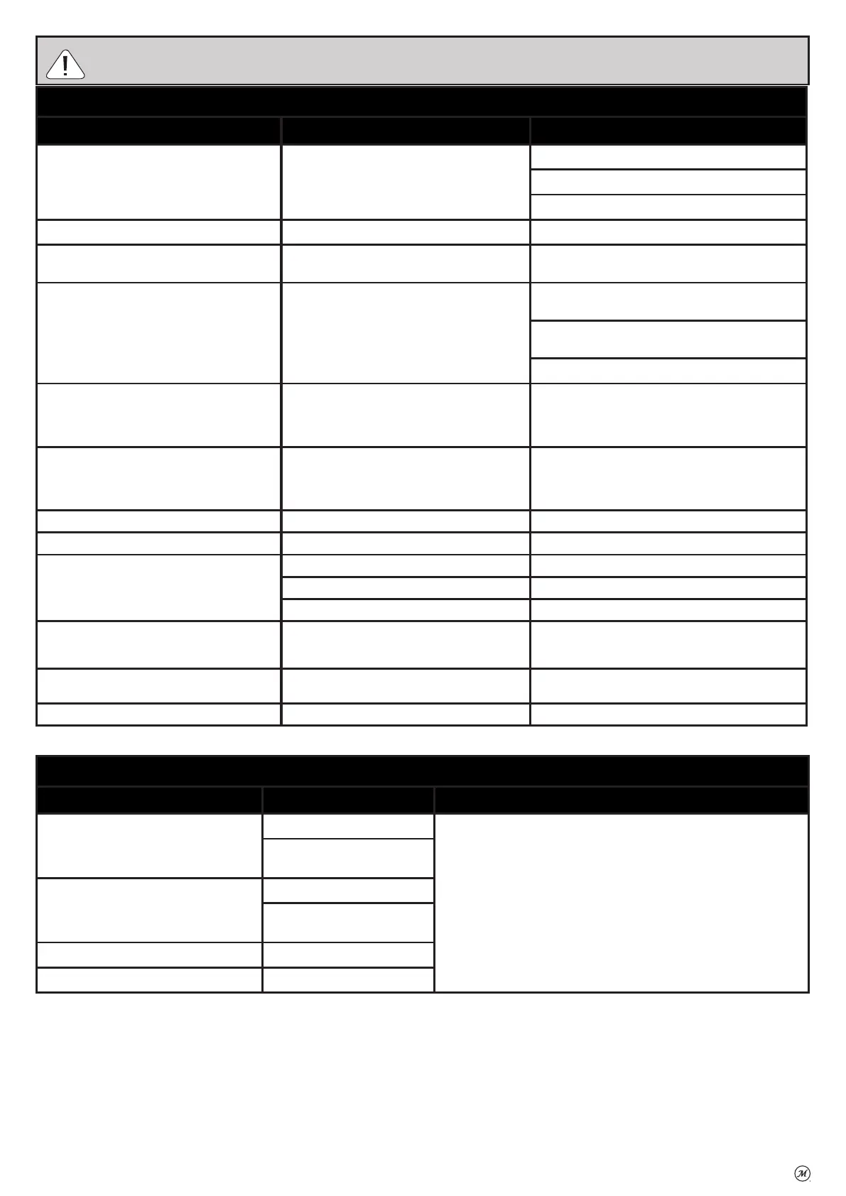 Flashback (re in burner tube) Burner and/or burner tube has blockage Turn burner control knob and gas cylinder valve o.