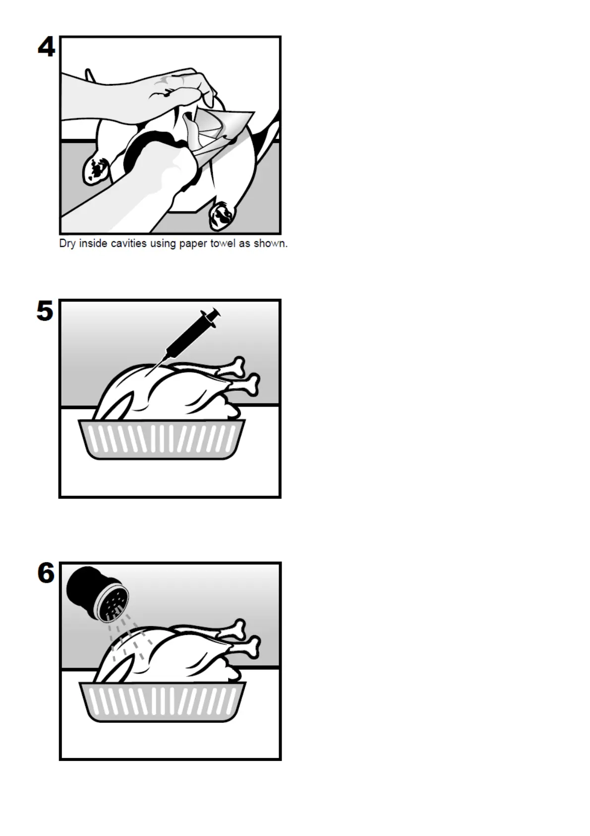 5. If desired inject with marinade (not included). Insert 4-8 oz. into each side of turkey breast, thigh,