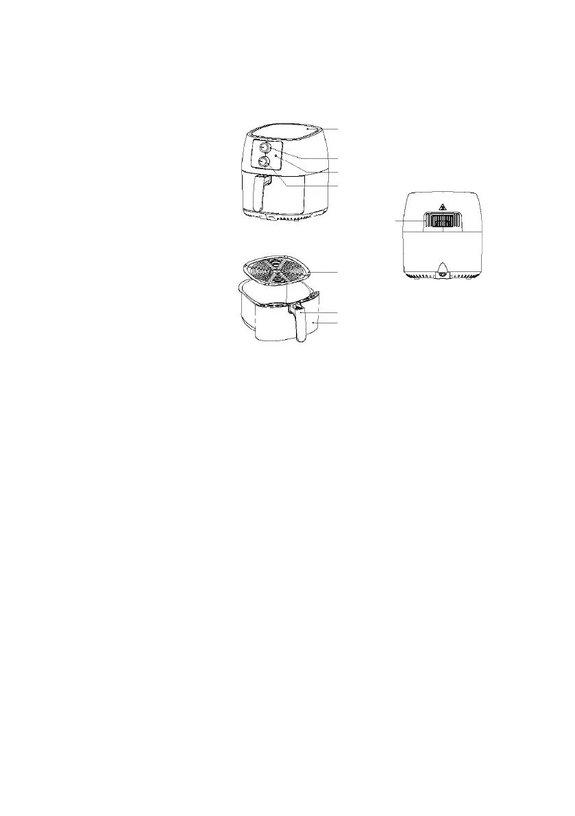 - Nach dem Kochen mit der fettfreien Fritteuse kann Dampf aus der Friteuse austreten.