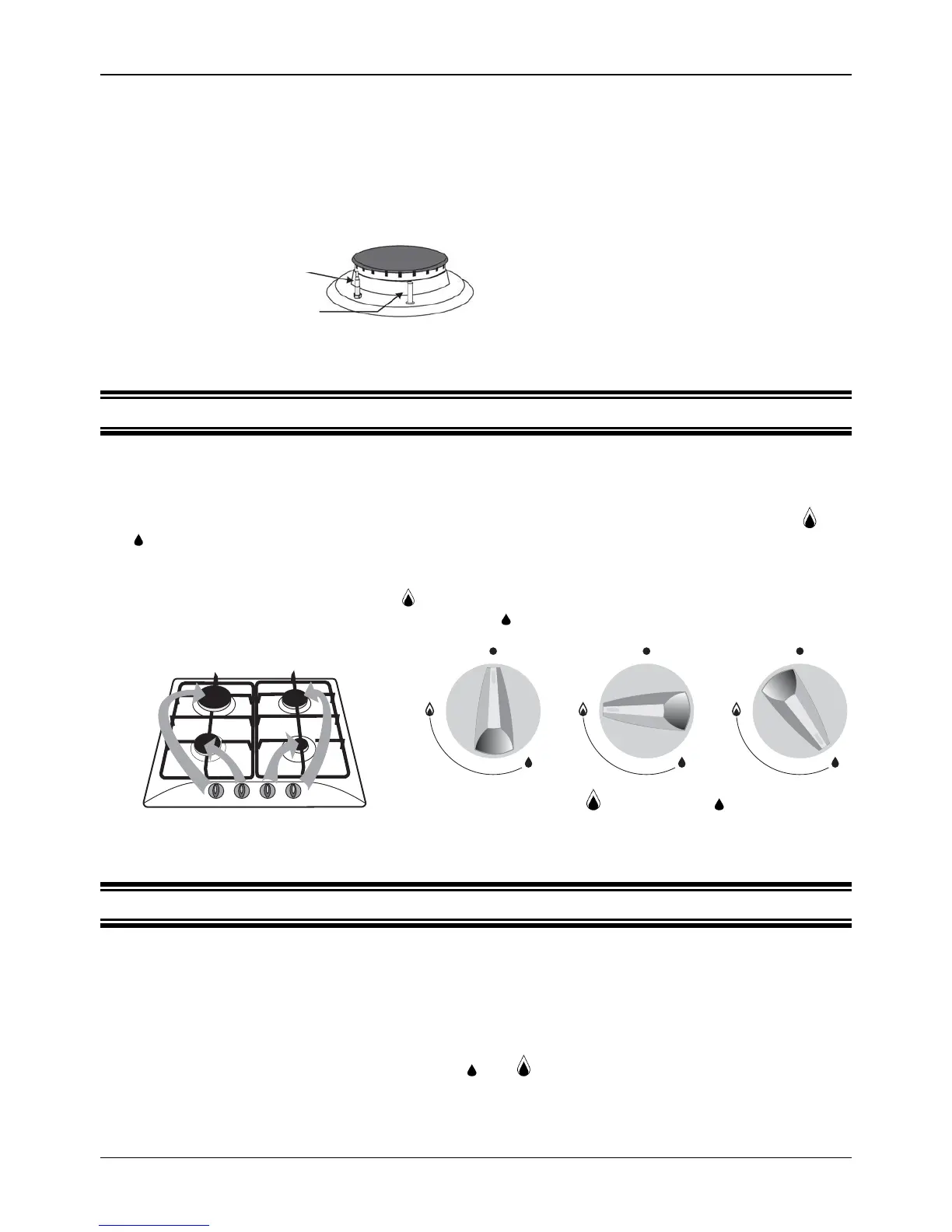push the knob of a burner until it stops, then turn it anticlockwise and push down until the burner
