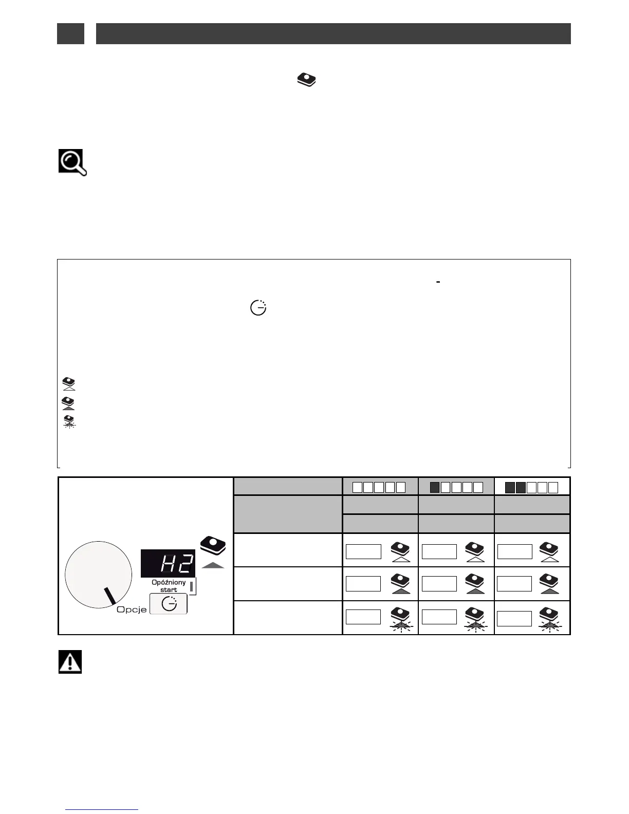 — Press the “opóźniony start” button . The screen now displays the setting (factory setting of