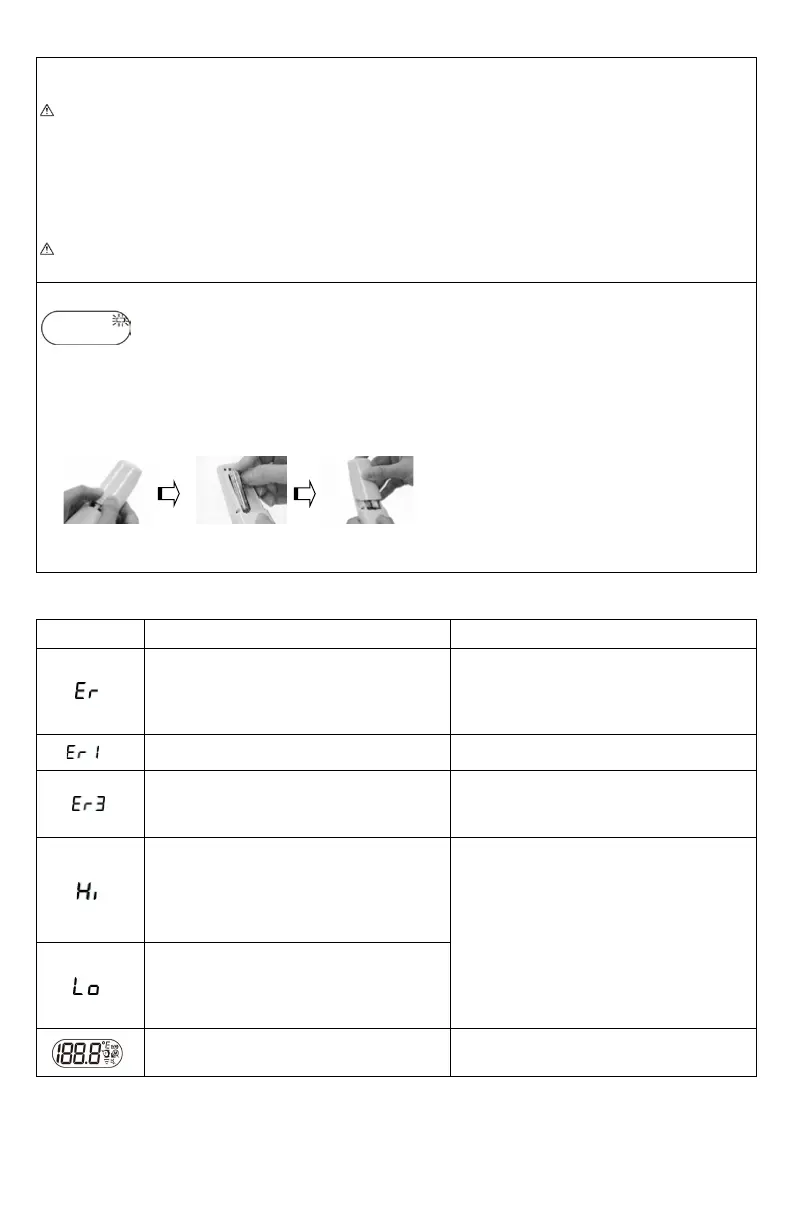 Medição antes da estabilização do aparelho. Aguarde até que “Er1” desapareça da tela.