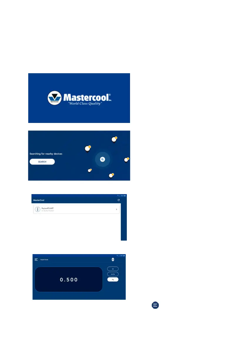 6. Sobald die Digitalwaage und die Mastercool Connect-App miteinander verbunden sind Zeigt die App an, was die